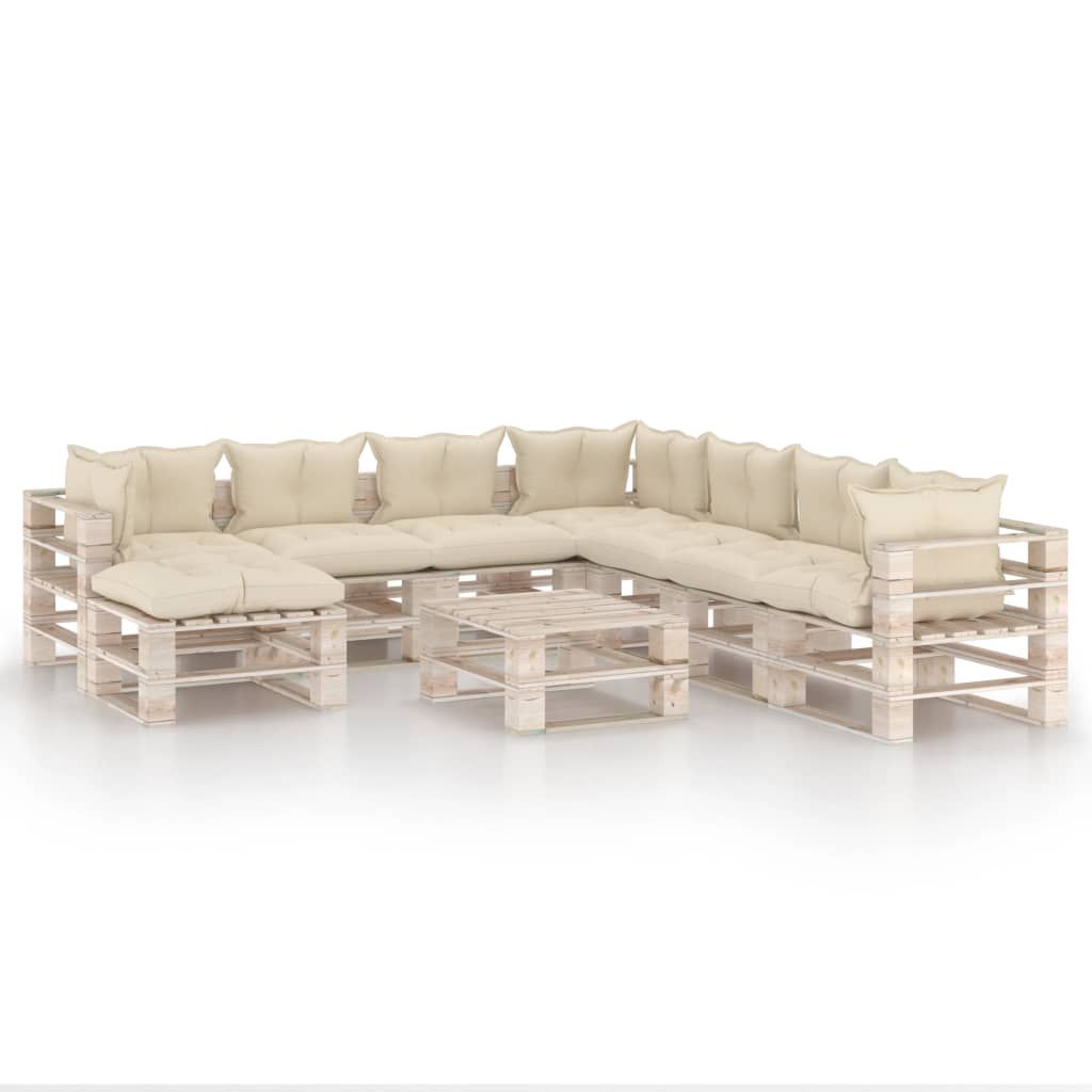 9-cz. zestaw mebli ogrodowych z palet, z poduszkami, sosna