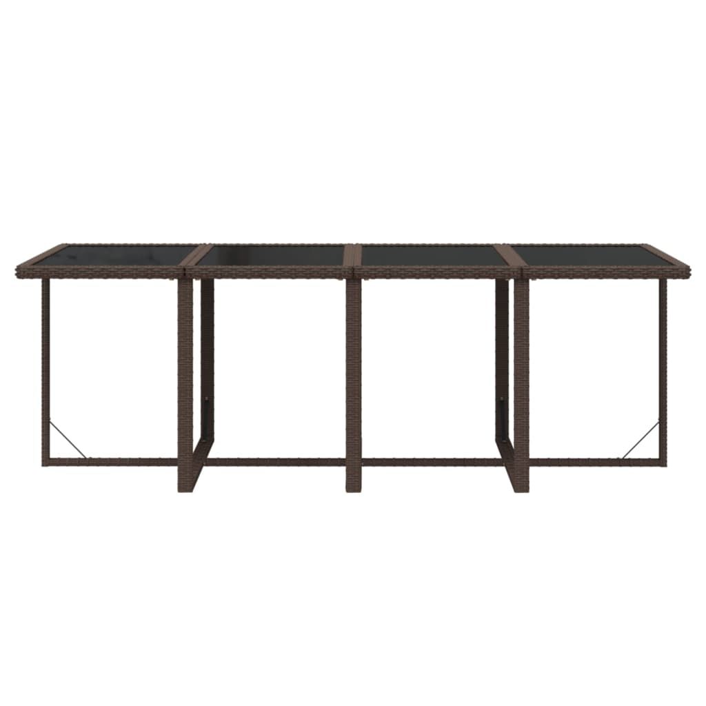 Zestaw klasycznych mebli ogrodowych o eleganckim i współczesnym wyglądzie będzie znakomitym wyborem do zaserwowania posiłku na świeżym powietrzu lub relaksu w Twoim ogrodzie. Do użytku na zewnątrz: ten zestaw ogrodowy, wykonany z odpornego na czynniki pogodowe i wodę rattanu PE, jest łatwy do czyszczenia, wytrzymały i odpowiedni do codziennego użytkowania. Solidna rama: malowana proszkowo, stalowa rama sprawia, że zestaw mebli wypoczynkowych na taras jest mocny i trwały. Wygoda: grube, miękkie, wypełnione gąbką poduszki na siedziska i oparcia zapewniają większy komfort siedzenia. Przestawna konstrukcja: możesz opuścić oparcia i wsunąć krzesła pod stół, aby zaoszczędzić cenne miejsce, gdy zestaw nie jest używany. Dzięki lekkości wszystkie elementy można łatwo przestawiać. Uwaga:Aby przedłużyć żywotność mebli ogrodowych, zalecamy zabezpieczenie ich wodoodpornym pokrowcem.