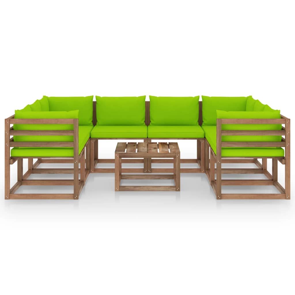 9-cz. zestaw wypoczynkowy do ogrodu, jasnozielone poduszki