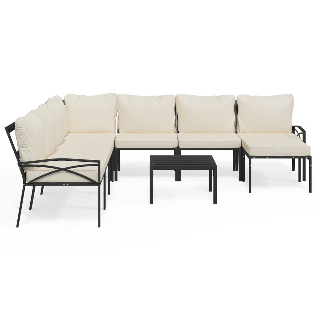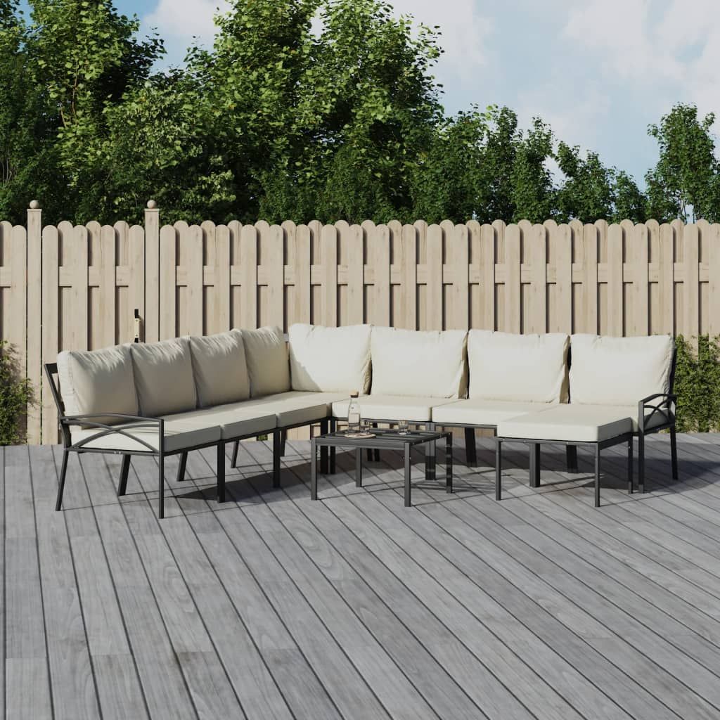 9-cz. zestaw wypoczynkowy do ogrodu, piaskowe poduszki, stal