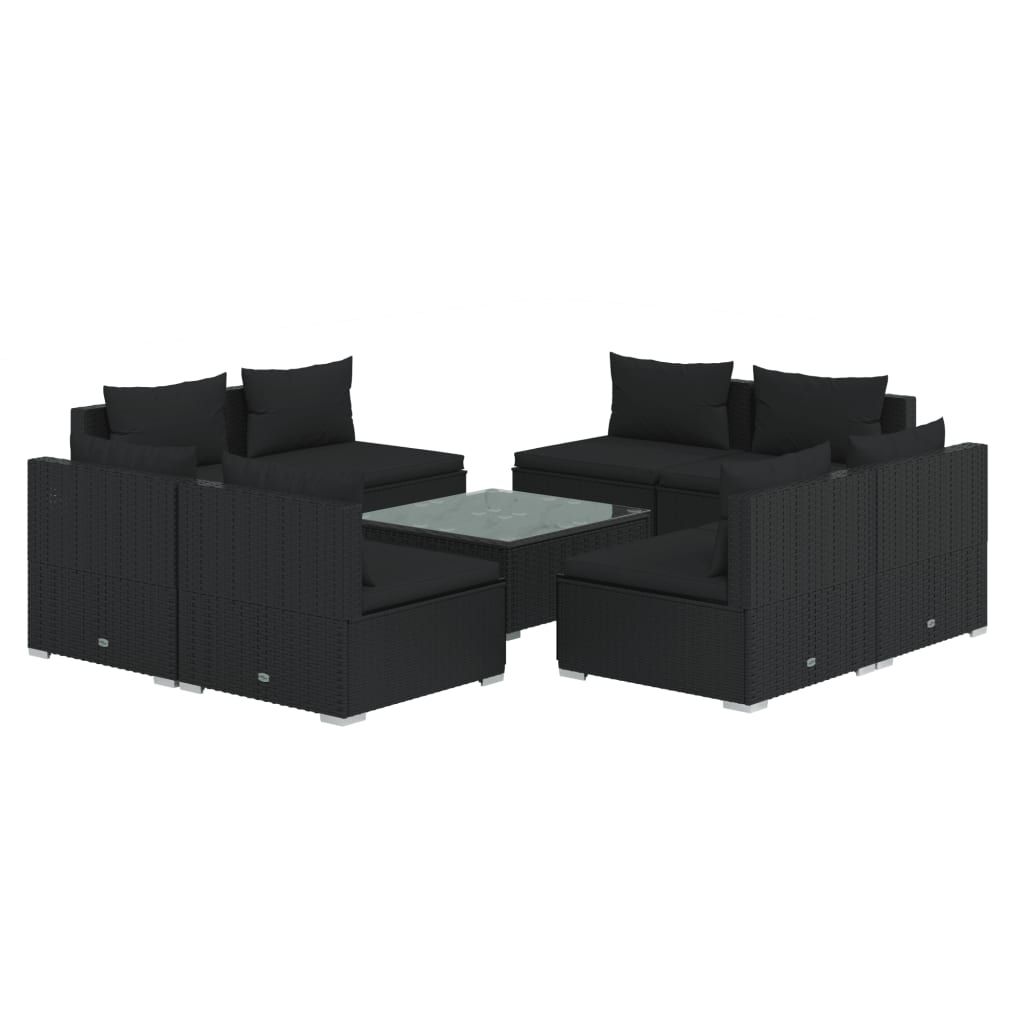 9-cz. zestaw wypoczynkowy do ogrodu, poduszki, czarny rattan PE