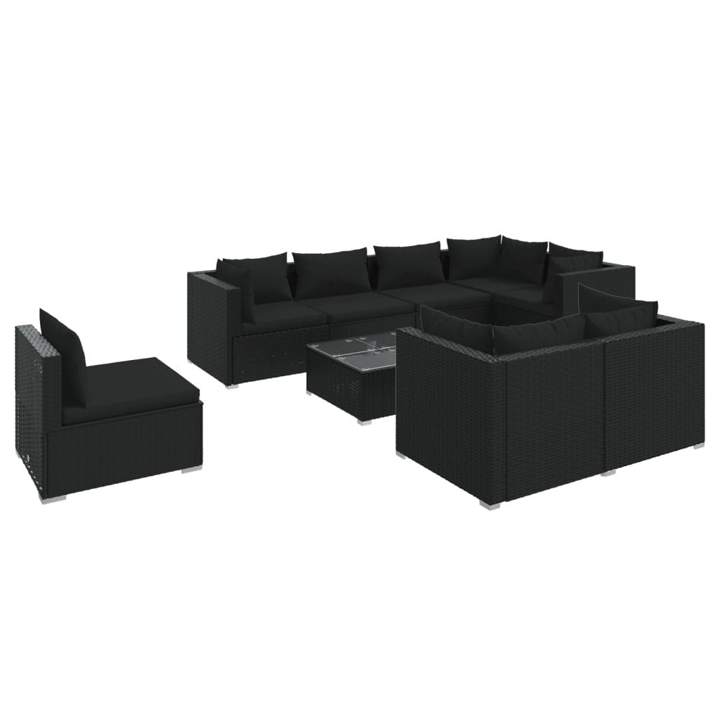 9-cz. zestaw wypoczynkowy do ogrodu, poduszki, czarny rattan PE