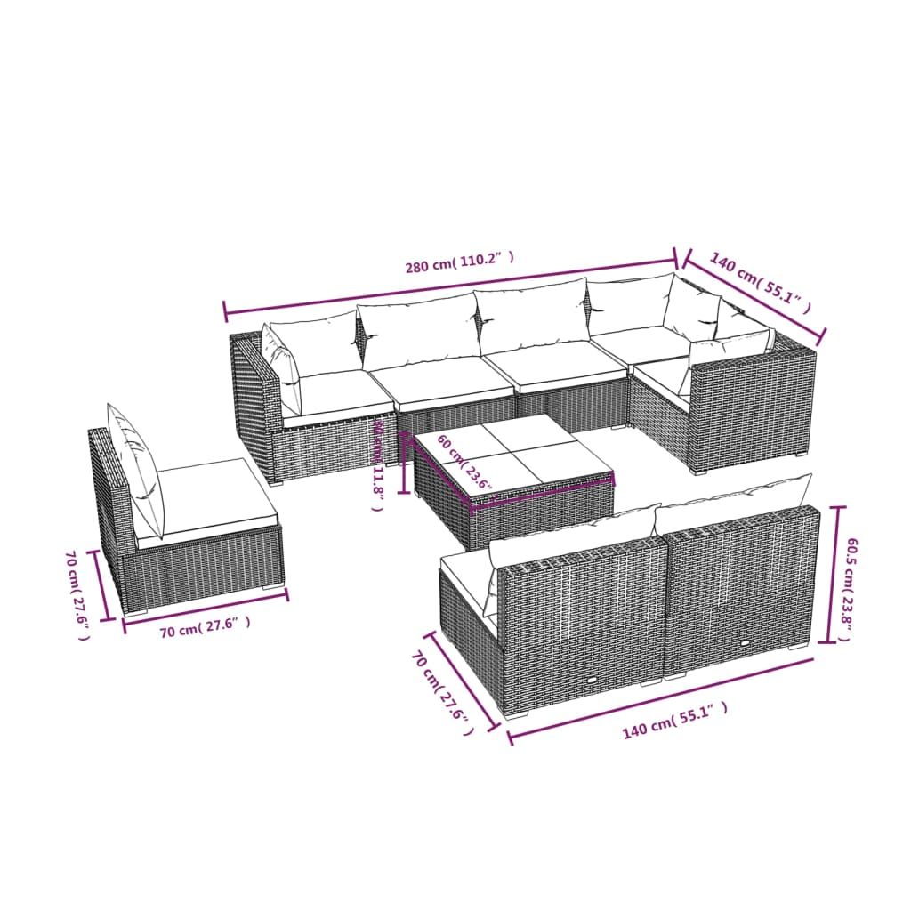9-cz. zestaw wypoczynkowy do ogrodu, poduszki, czarny rattan PE