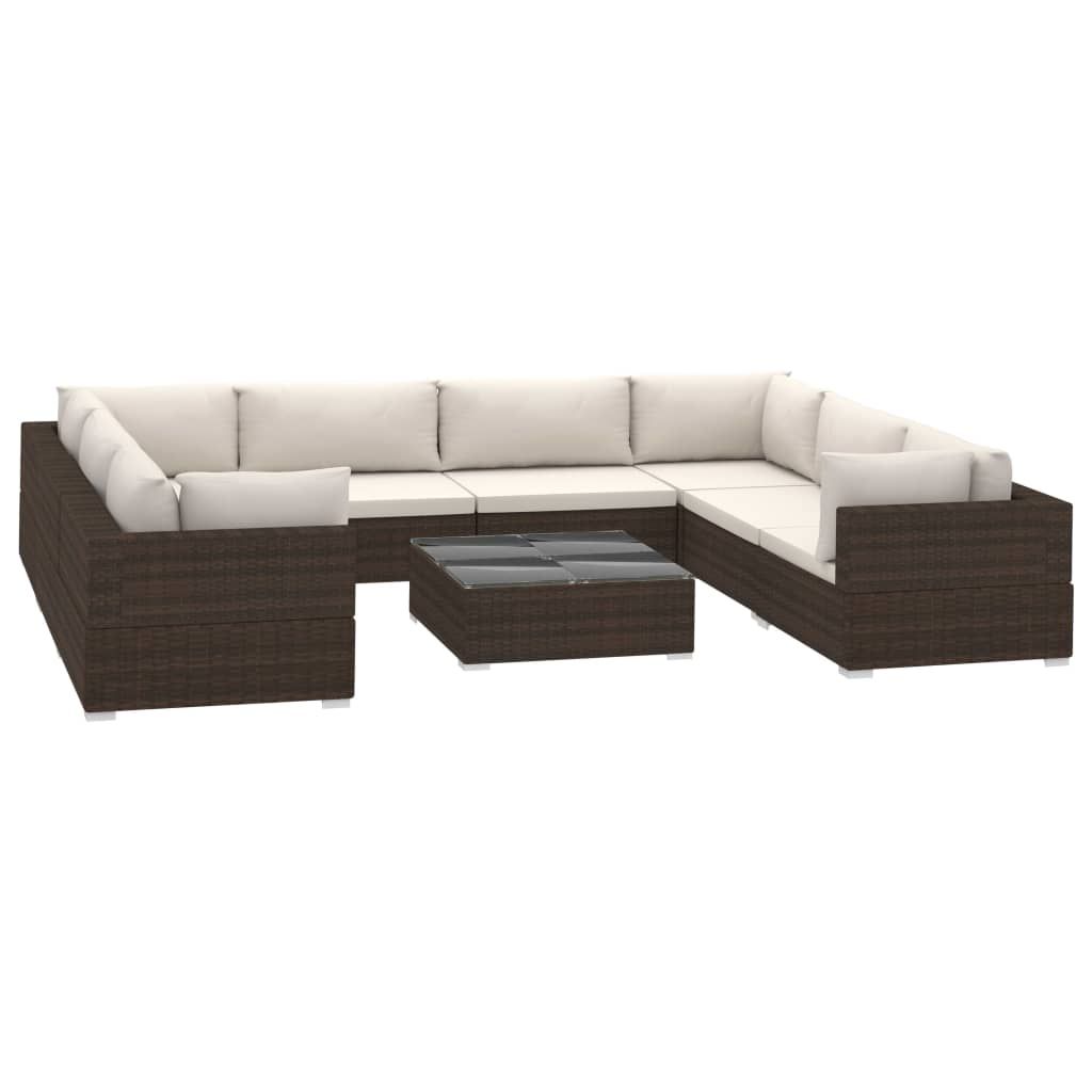 9-cz. zestaw wypoczynkowy do ogrodu, poduszki, rattan PE, brąz