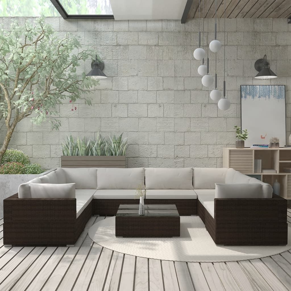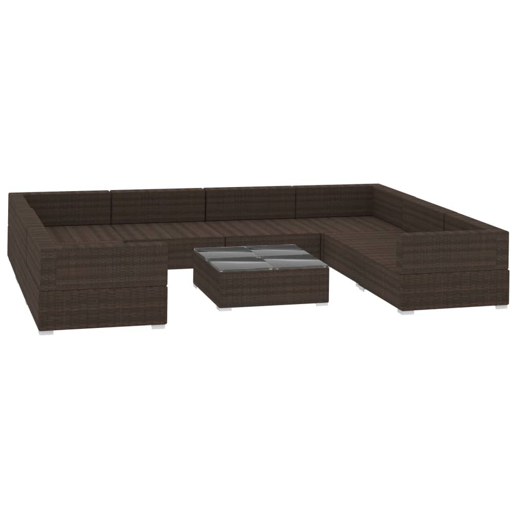 Zestaw rattanowych mebli ogrodowych łączy w sobie styl i funkcjonalność oraz z pewnością stanie się centralnym punktem w Twoim ogrodzie lub na tarasie. Jest on przeznaczony do całorocznego użytkowania na zewnątrz. Dzięki zastosowaniu odpornego na czynniki pogodowe oraz wodę rattanu PE zestaw ten jest łatwy do czyszczenia, wytrzymały i odpowiedni do codziennego użytkowania. Jego mocna, malowana proszkowo, stalowa rama zapewnia niezwykłą trwałość. Zestaw jest modułowy i lekki, można go więc swobodnie przestawiać i dopasować do każdego otoczenia. Grube, zdejmowane poduszki są bardzo wygodne. Zawartość przesyłki: 4 sofy narożne, 4 sofy środkowe, 1 stolik kawowy, 8 poduszek na siedziska oraz 12 poduszek na oparcia. Uwaga: zalecamy przykrycie zestawu na czas deszczu, śniegu i mrozu.
