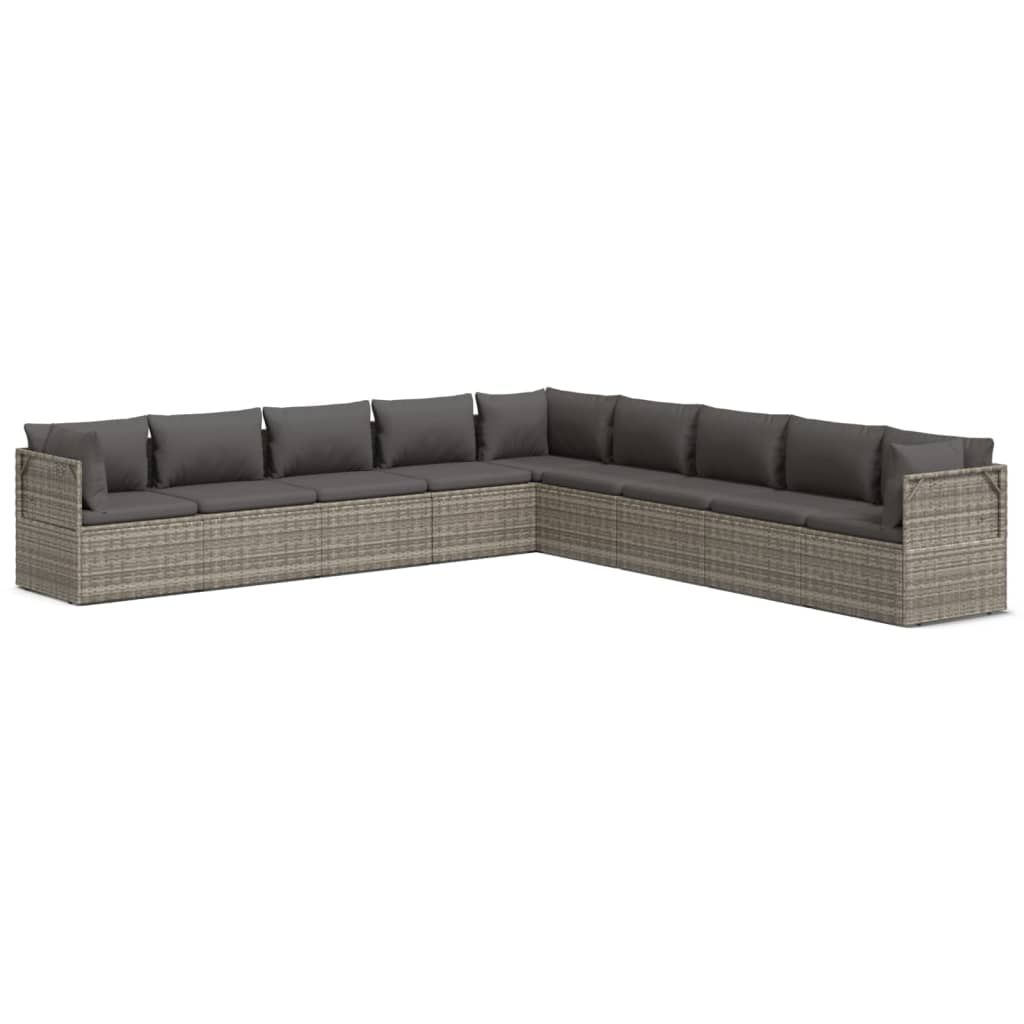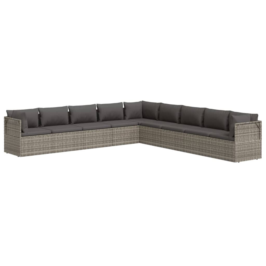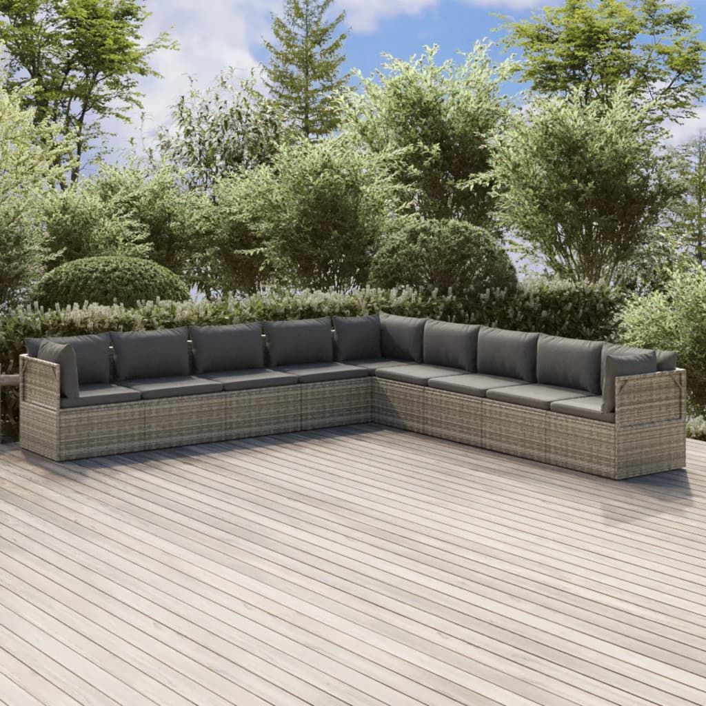 9-cz. zestaw wypoczynkowy do ogrodu, poduszki, rattan PE, szary