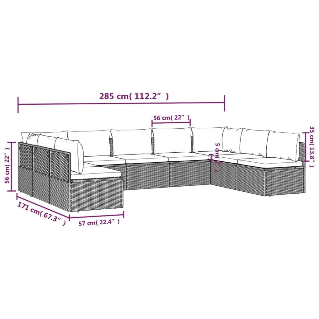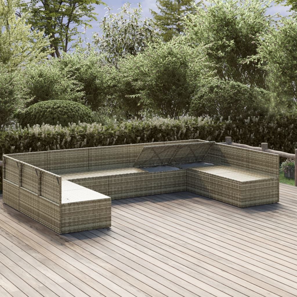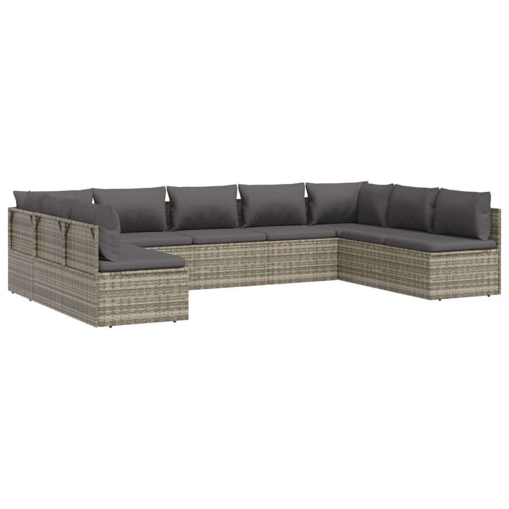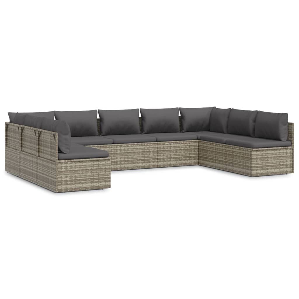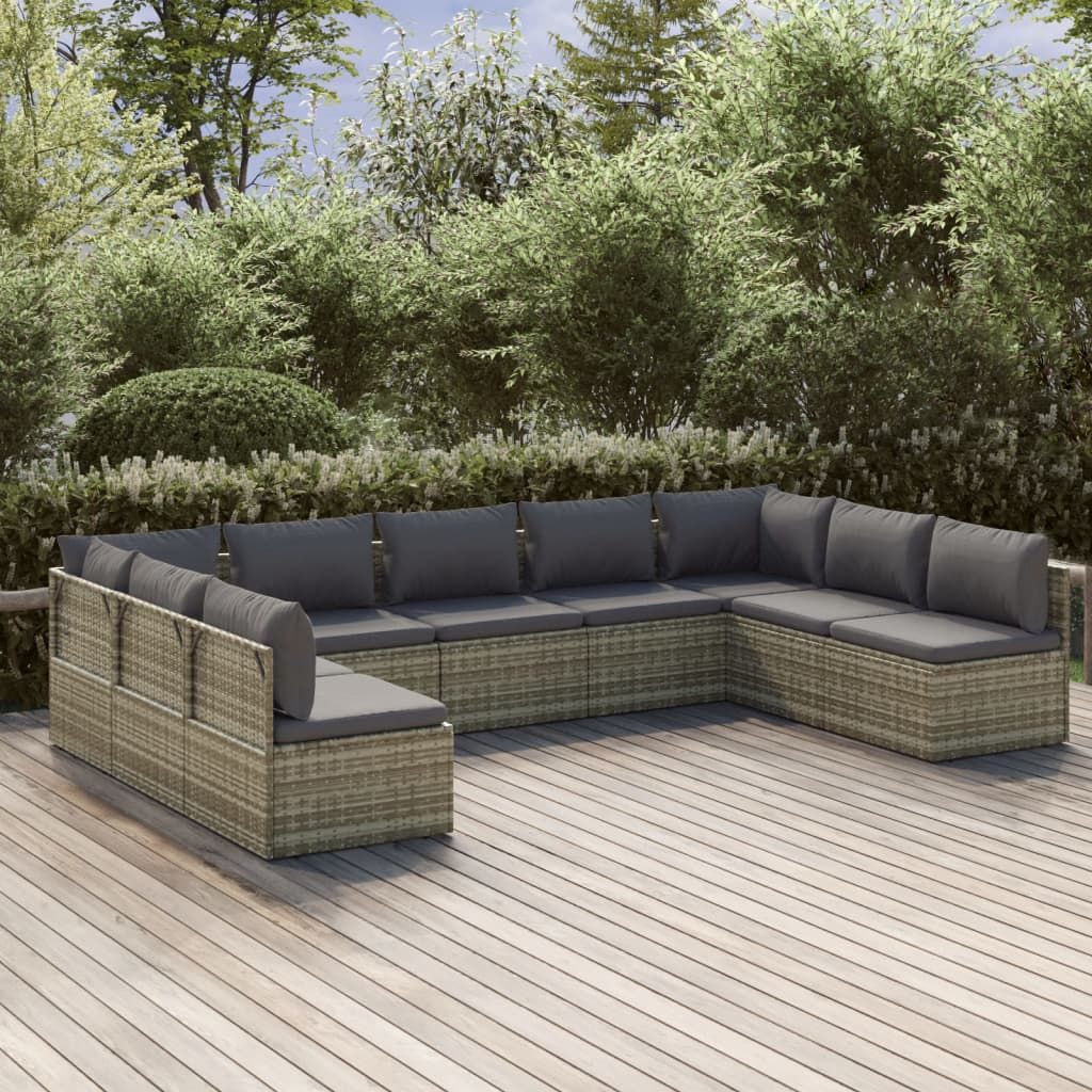 9-cz. zestaw wypoczynkowy do ogrodu, poduszki, rattan PE, szary
