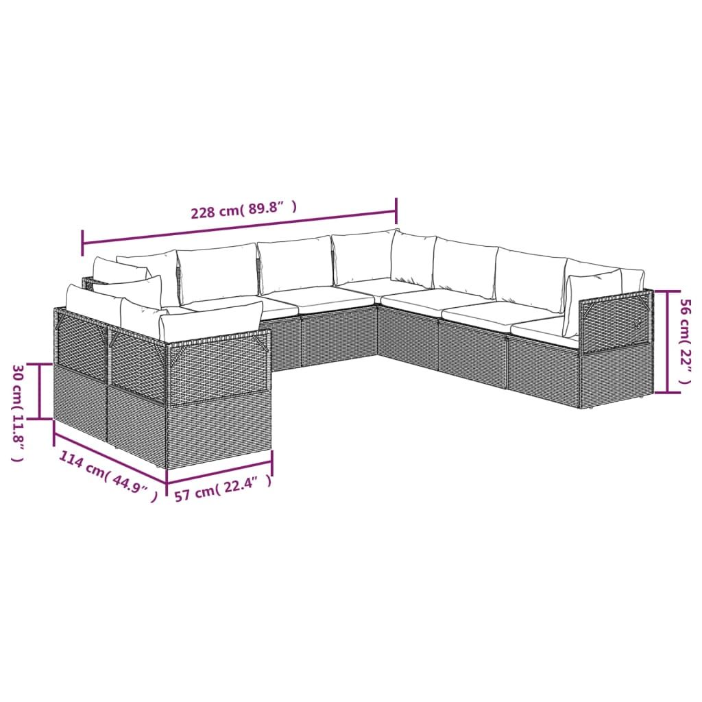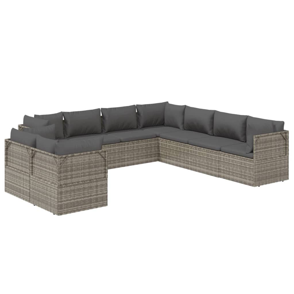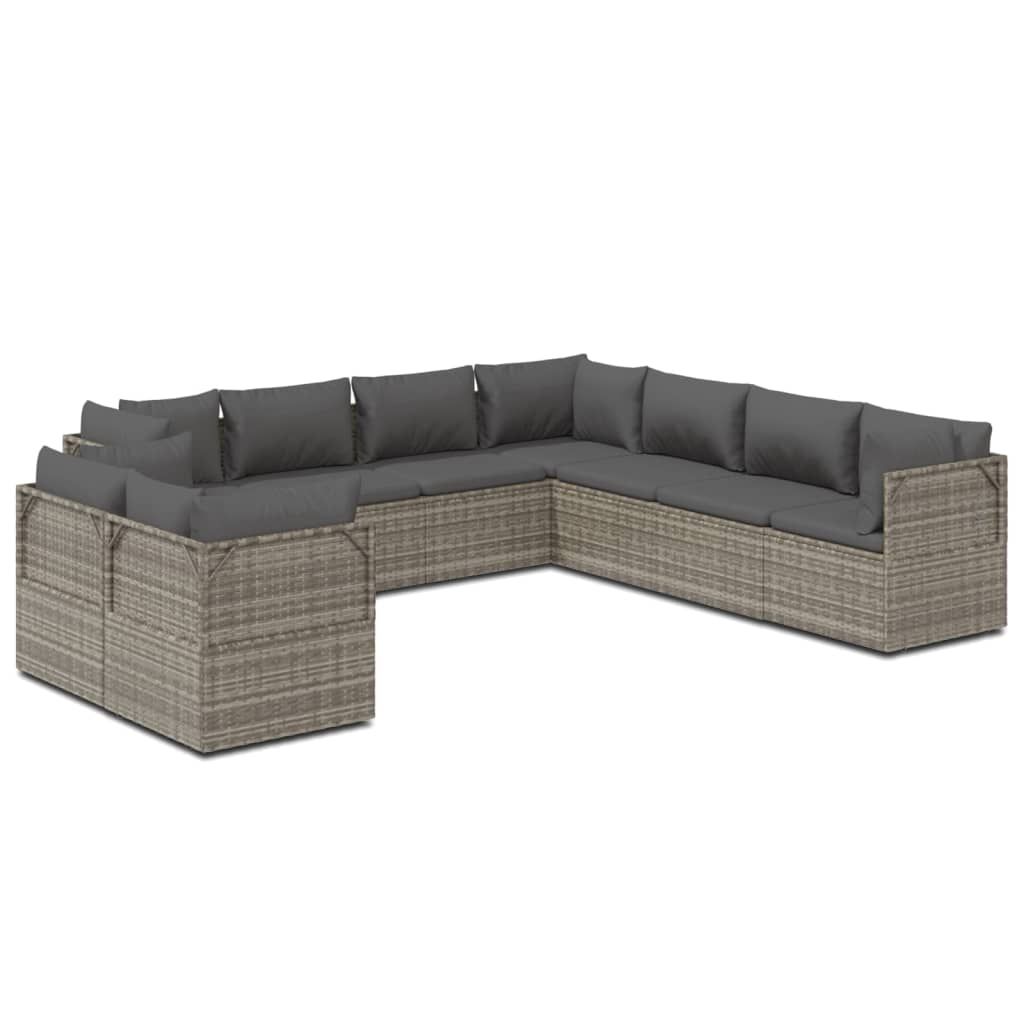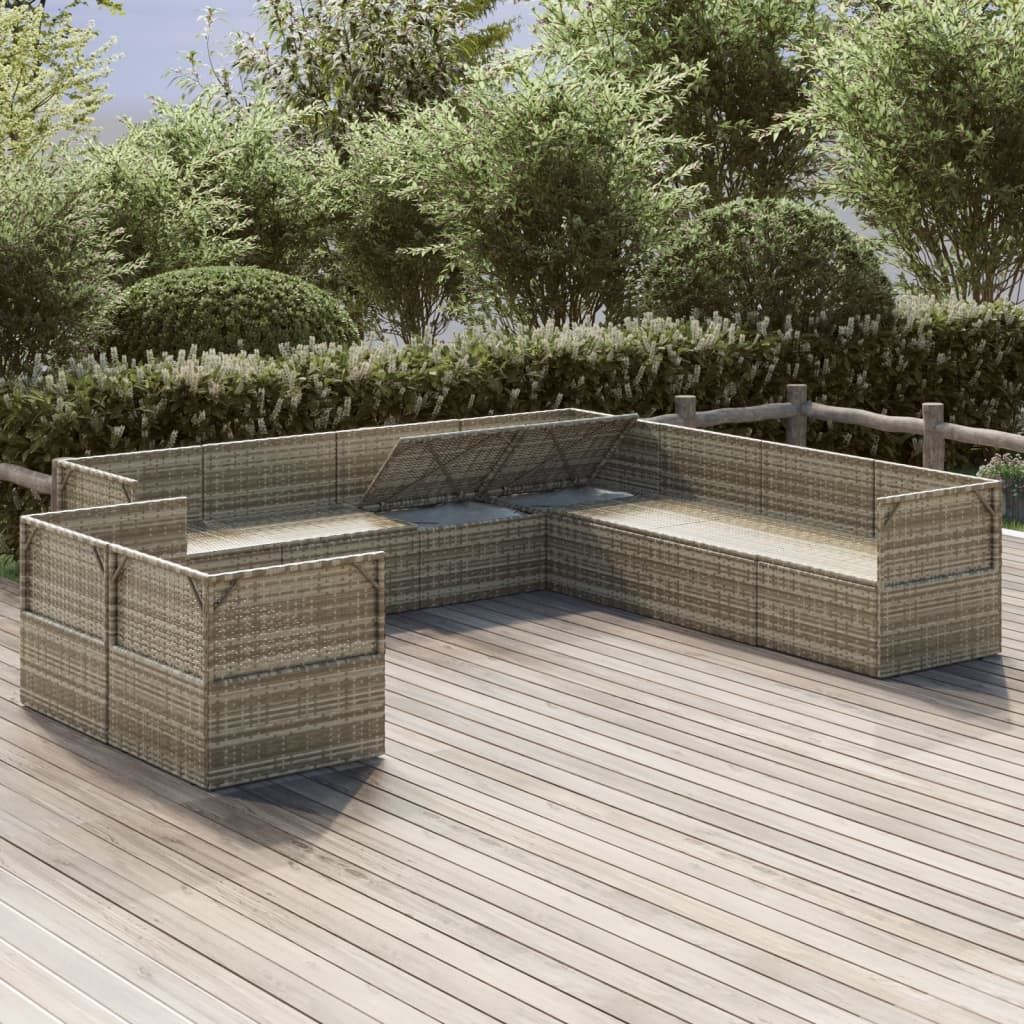 9-cz. zestaw wypoczynkowy do ogrodu, poduszki, rattan PE, szary