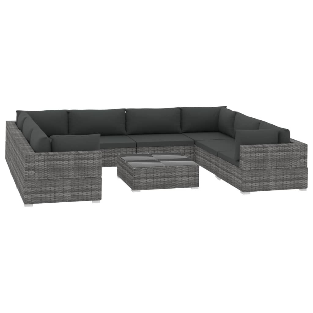 9-cz. zestaw wypoczynkowy do ogrodu, poduszki, rattan PE, szary