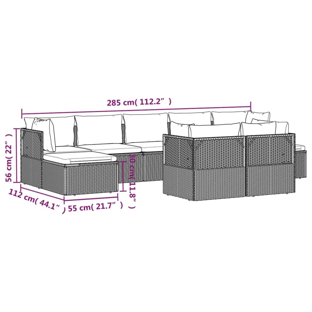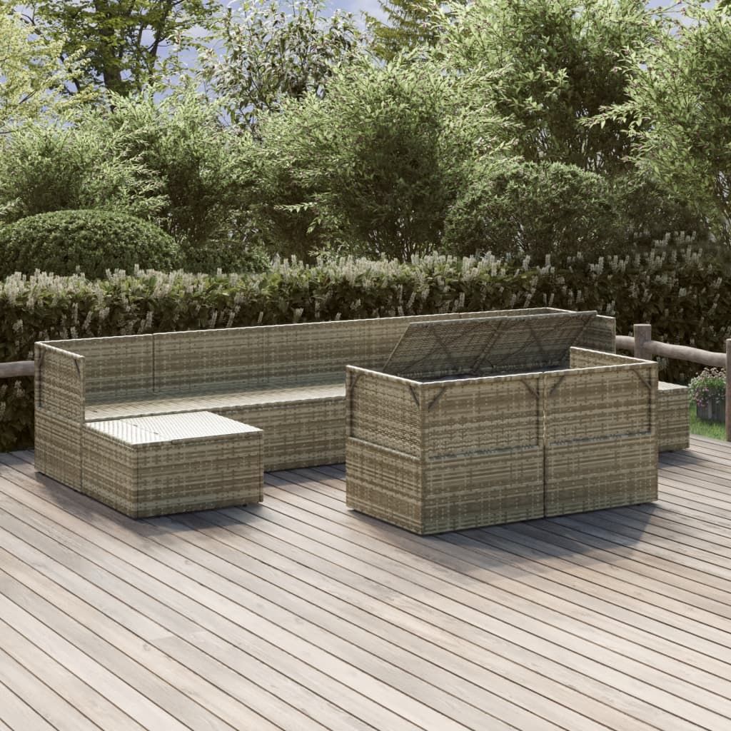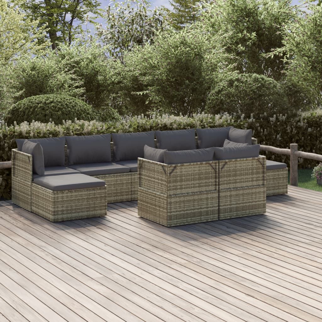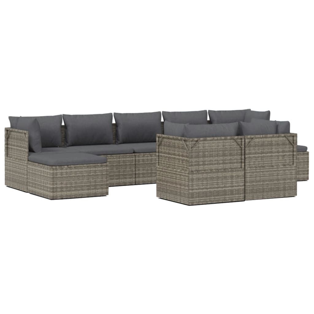 9-cz. zestaw wypoczynkowy do ogrodu, poduszki, rattan PE, szary