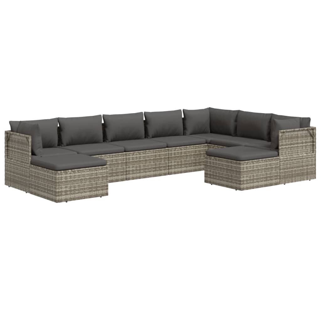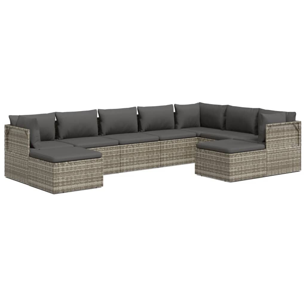 9-cz. zestaw wypoczynkowy do ogrodu, poduszki, rattan PE, szary
