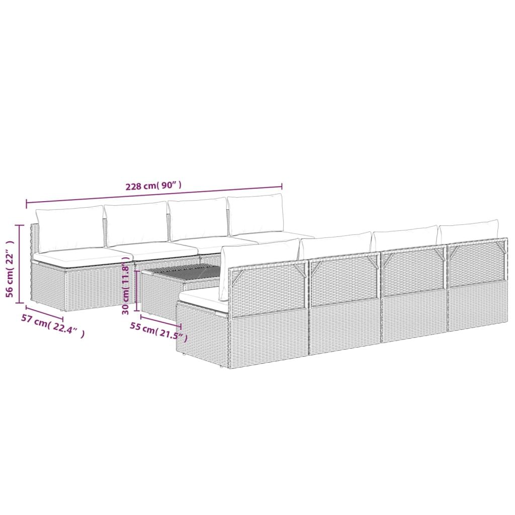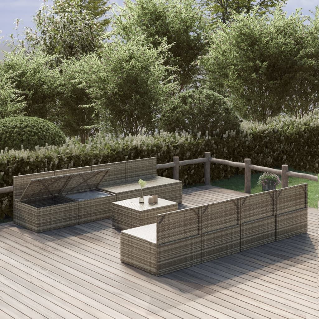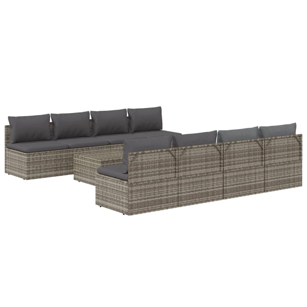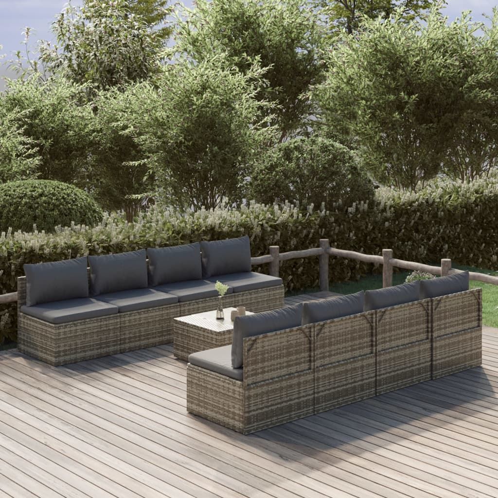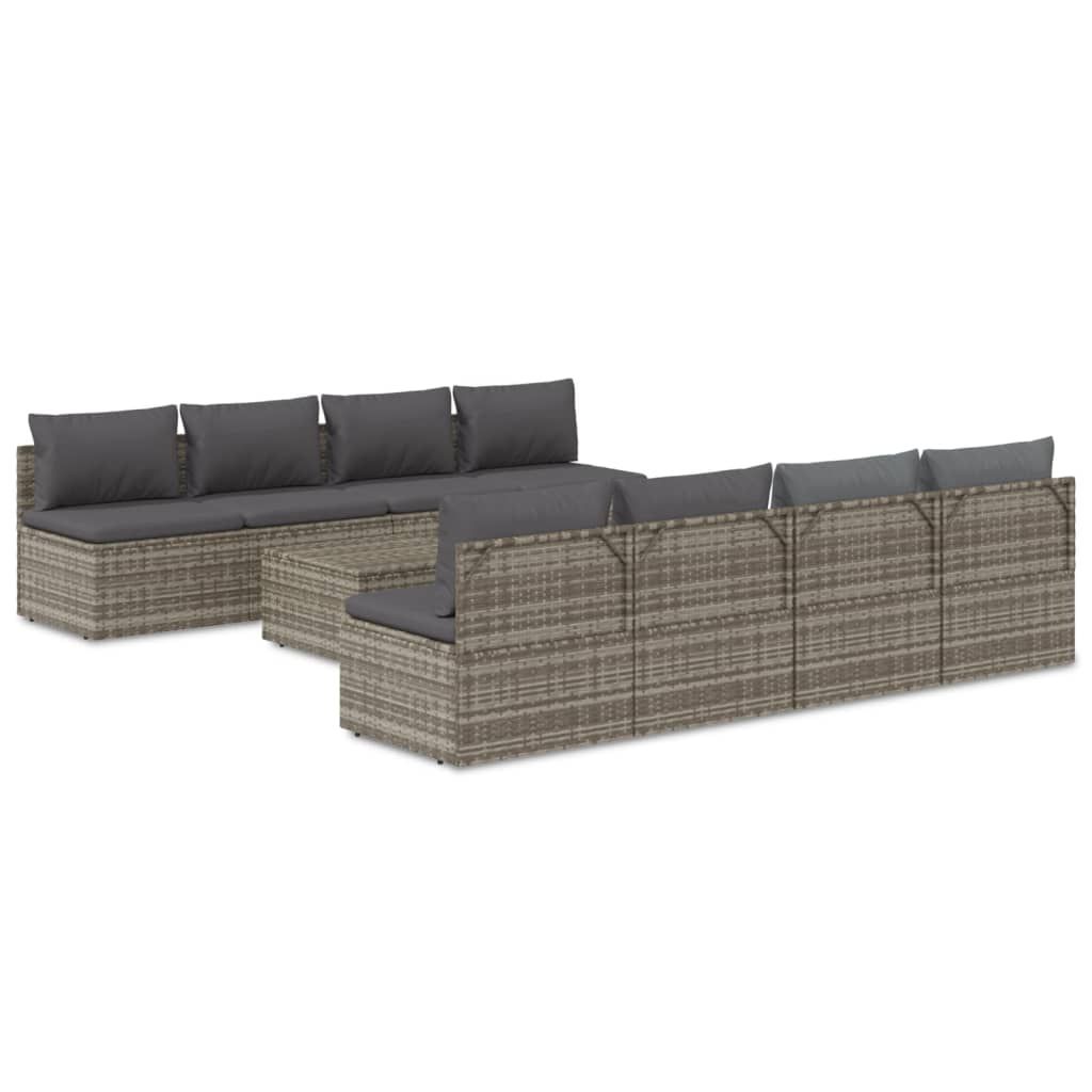 9-cz. zestaw wypoczynkowy do ogrodu, poduszki, rattan PE, szary