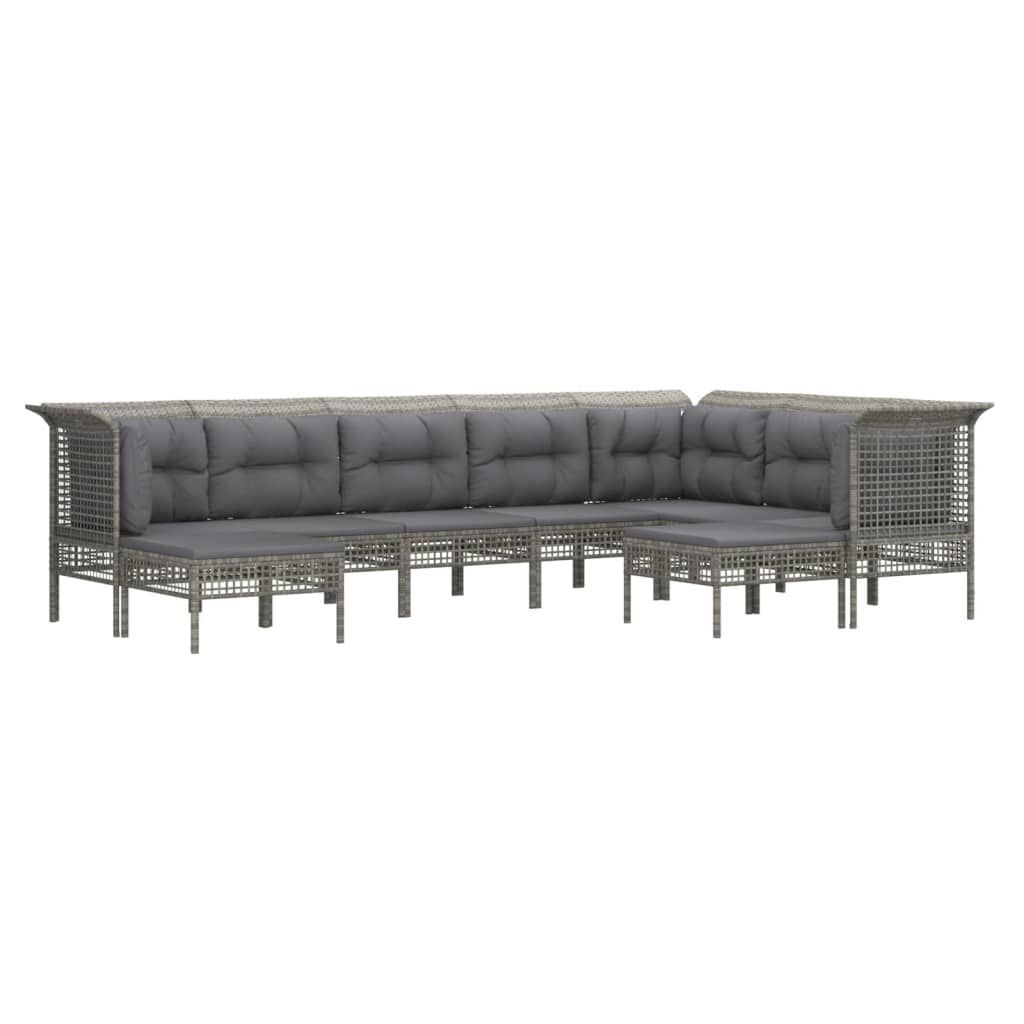 9-cz. zestaw wypoczynkowy do ogrodu, poduszki, rattan PE, szary