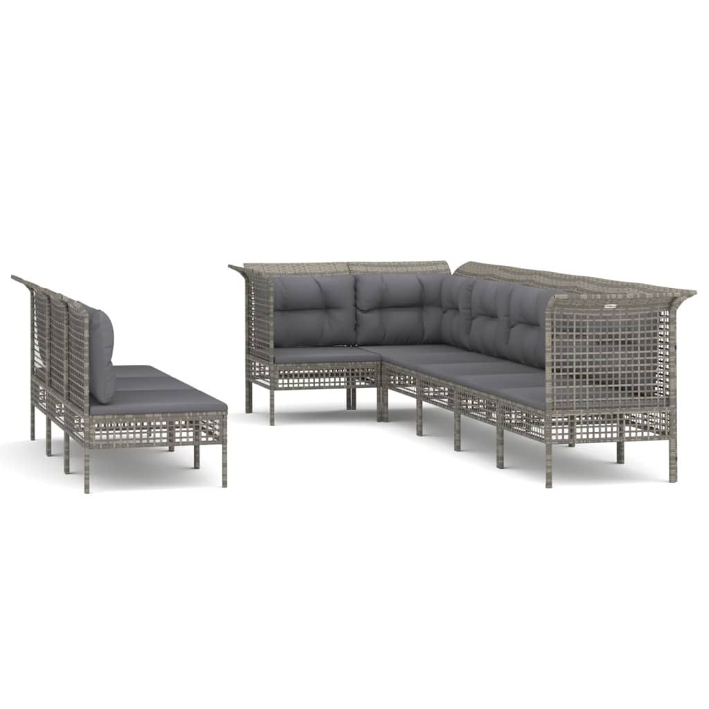9-cz. zestaw wypoczynkowy do ogrodu, poduszki, rattan PE, szary