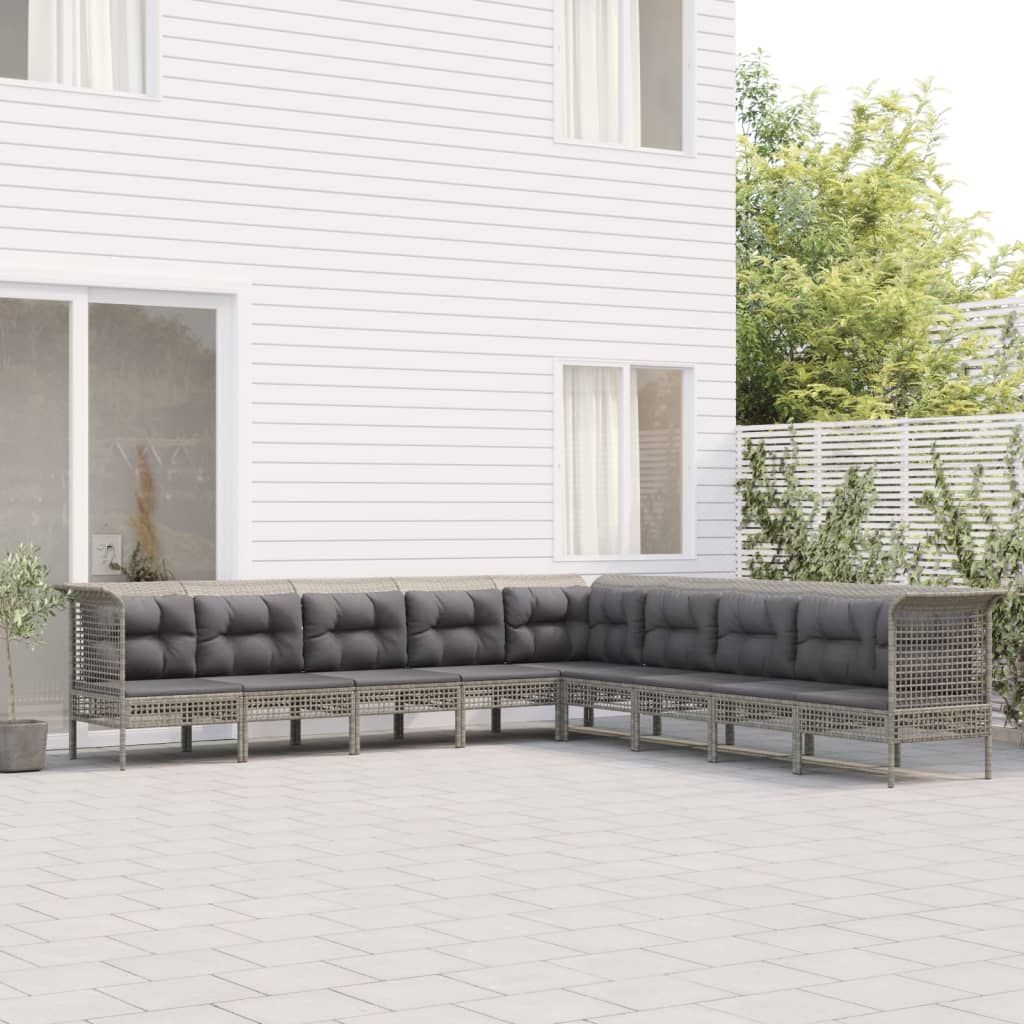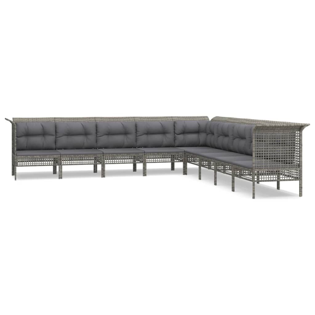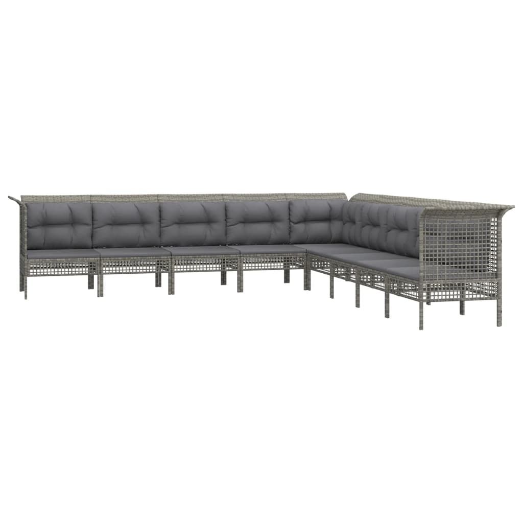 9-cz. zestaw wypoczynkowy do ogrodu, poduszki, rattan PE, szary