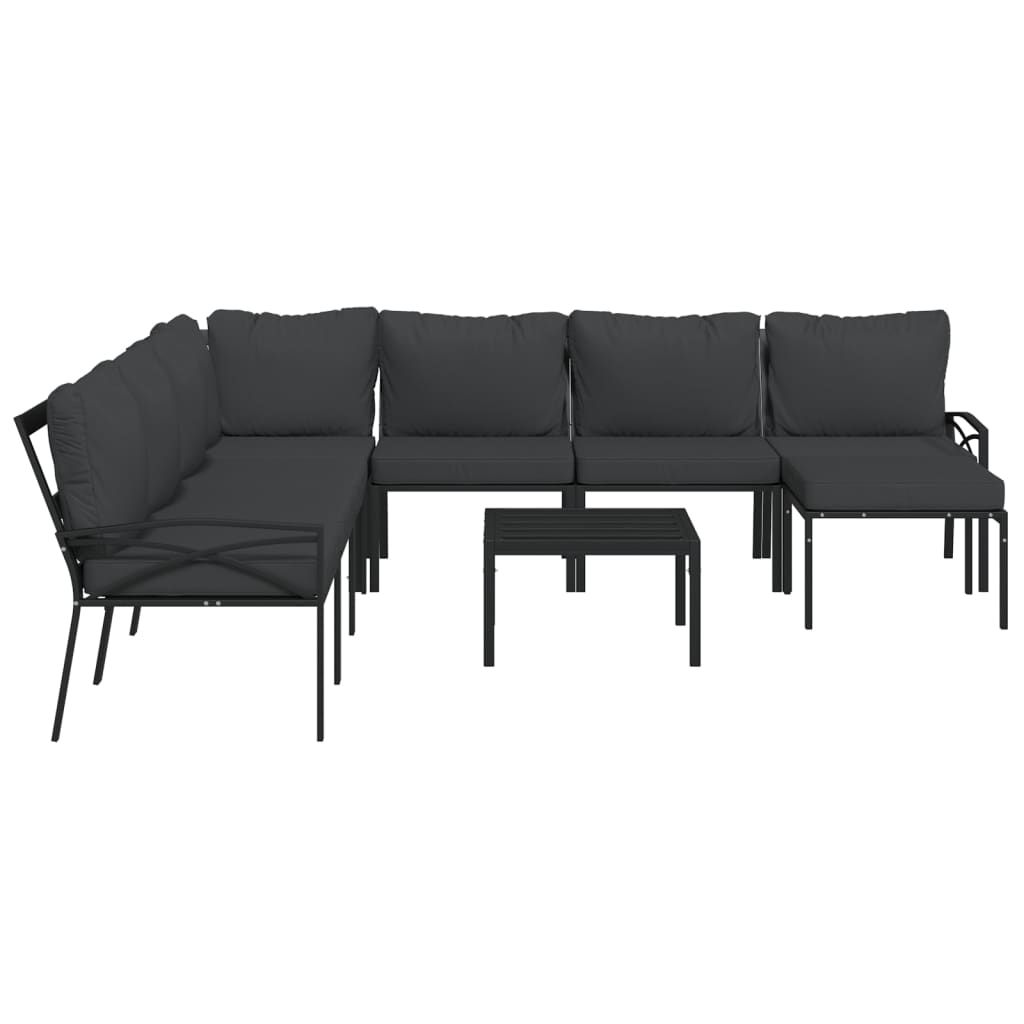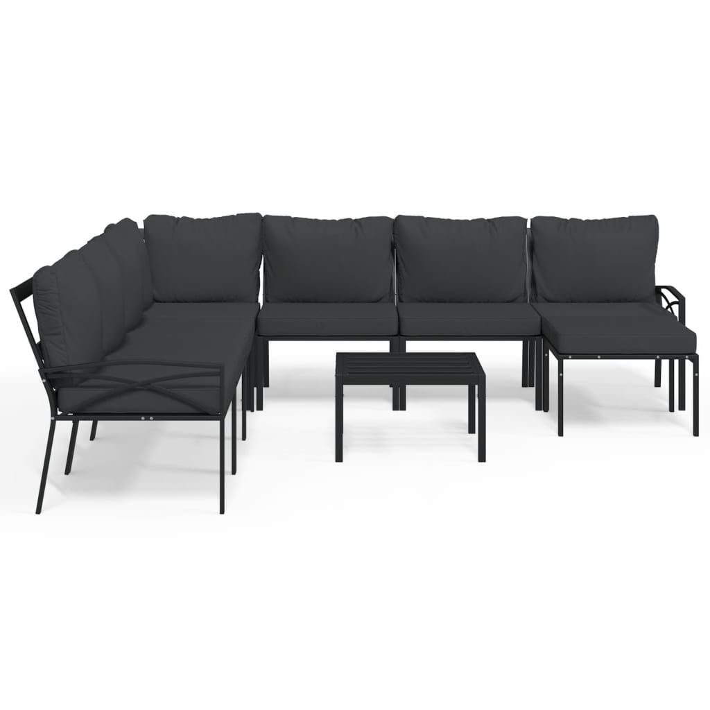 9-cz. zestaw wypoczynkowy do ogrodu, szare poduszki, stal