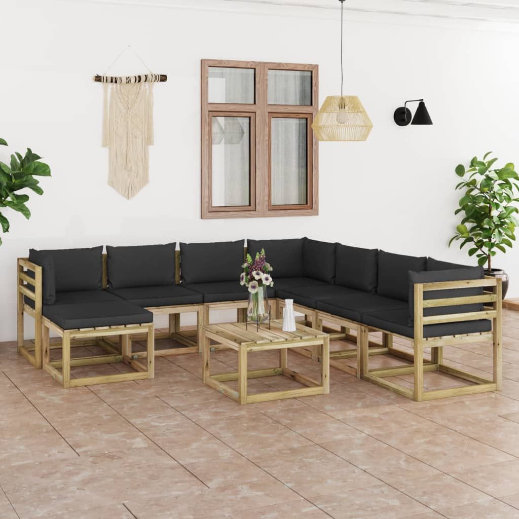 9-cz. zestaw wypoczynkowy do ogrodu, z poduszkami, drewniany