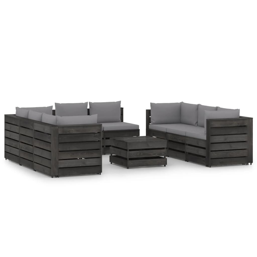 Opis produktu: Ten ogrodowy zestaw wypoczynkowy stanowi znakomity wybór, aby się zrelaksować i nacieszyć dobrą pogodą albo zdrzemnąć lub porozmawiać z rodziną i przyjaciółmi. Za sprawą ponadczasowej konstrukcji z palet wniesie on odrobinę rustykalnego uroku na Twoje patio, do ogrodu lub do salonu. Wykonany z impregnowanego drewna sosnowego zestaw wypoczynkowy z palet jest trwały, odporny na czynniki atmosferyczne i przyjazny dla środowiska. Ma on solidną konstrukcję i nie wymaga zbyt wielu czynności konserwacyjnych. W połączeniu z grubo wyściełanymi poduszkami zapewnia najwyższy komfort. Dodatkowo modułowa konstrukcja umożliwia ustawienie go w dowolnej aranżacji, zgodnie z własnym gustem. Uwaga: aby przedłużyć żywotność mebli ogrodowych, zalecamy zabezpieczenie ich wodoodpornym pokrowcem.
