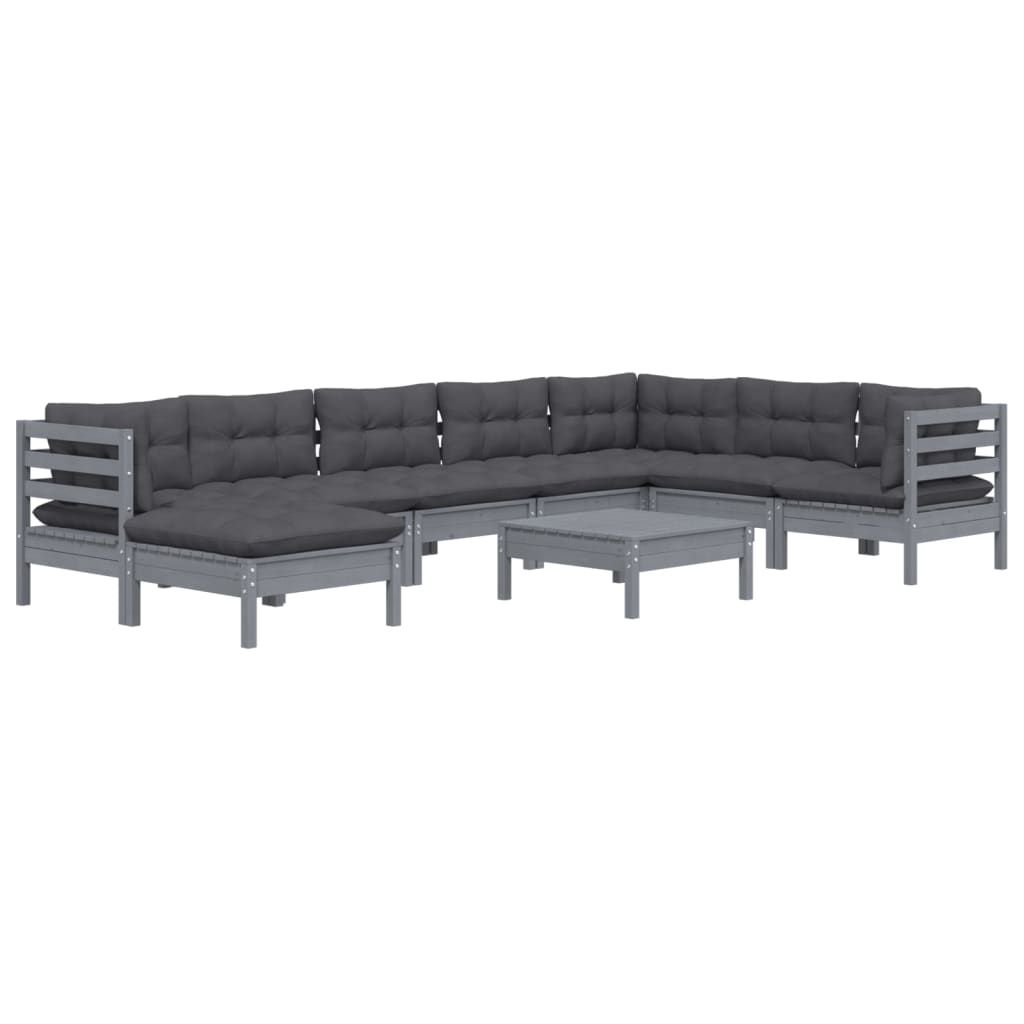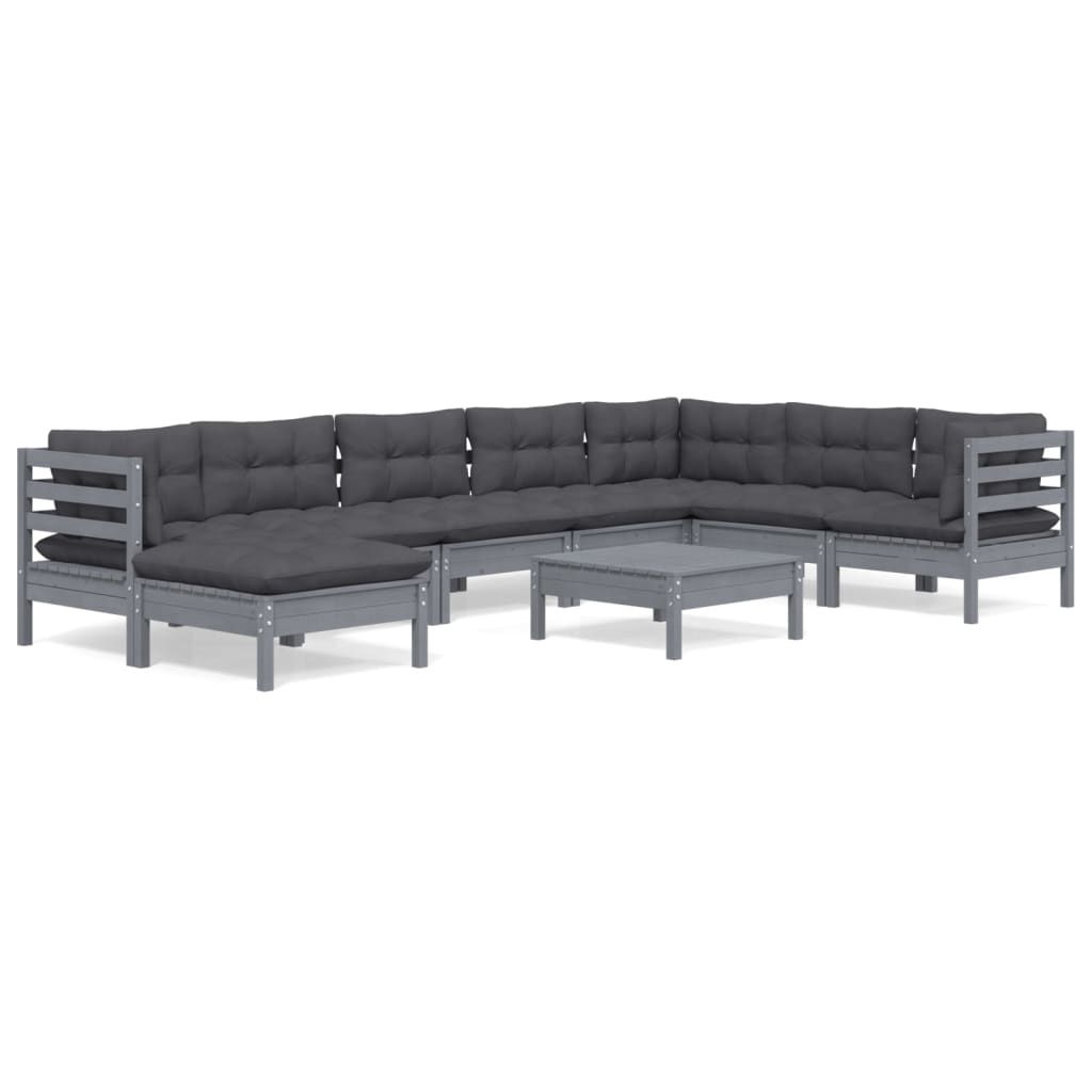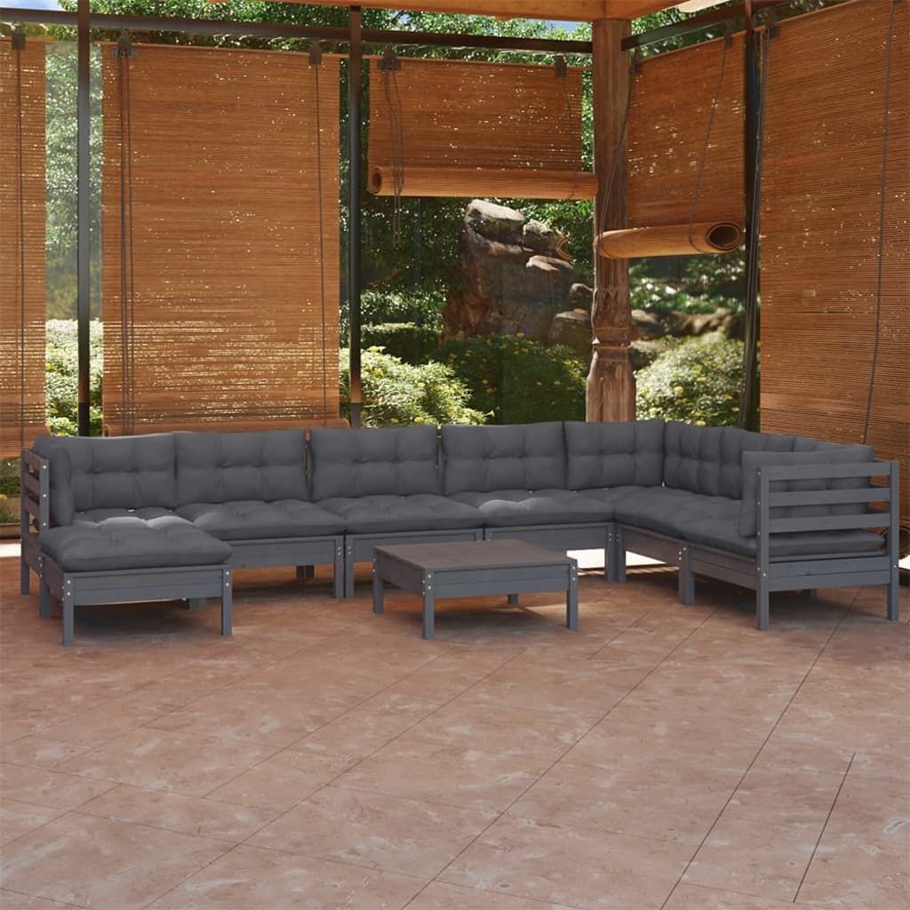 9-cz. zestaw wypoczynkowy do ogrodu, z poduszkami, szara sosna