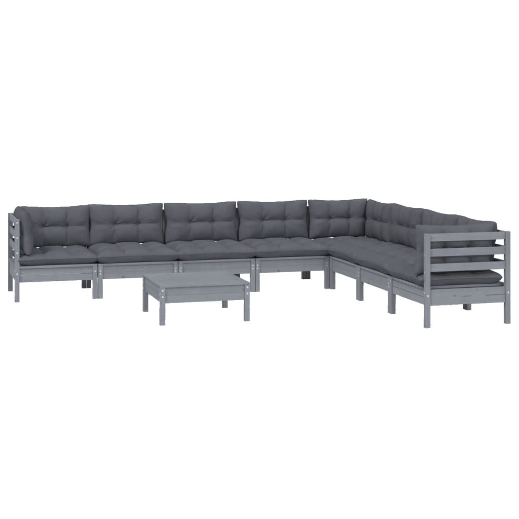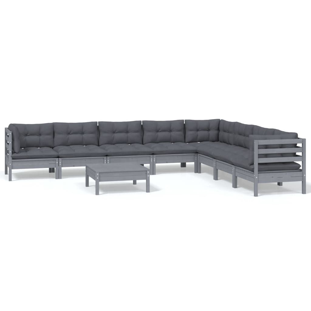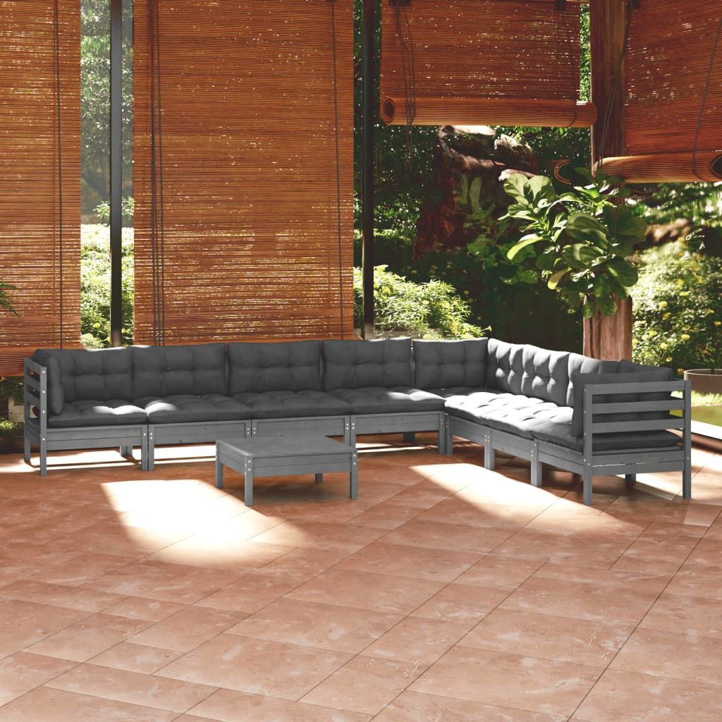 9-cz. zestaw wypoczynkowy do ogrodu, z poduszkami, szara sosna