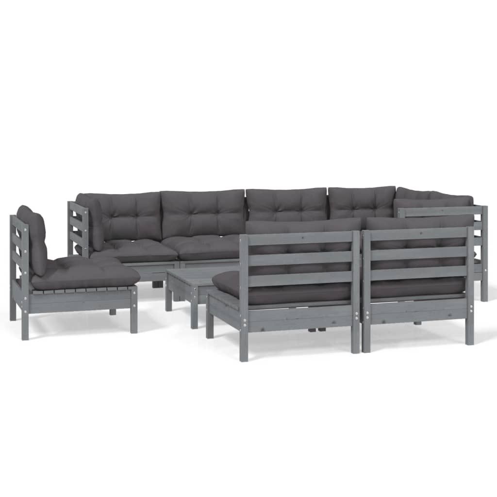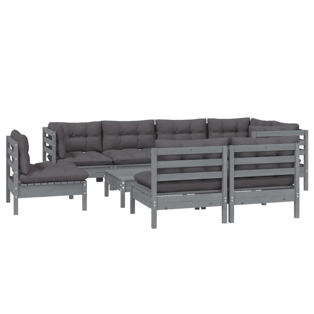 9-cz. zestaw wypoczynkowy do ogrodu, z poduszkami, szara sosna