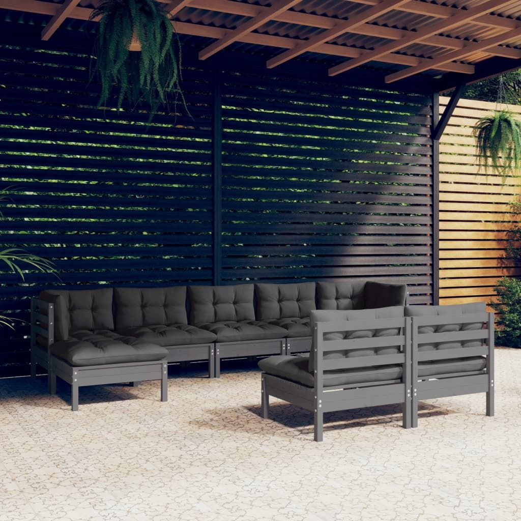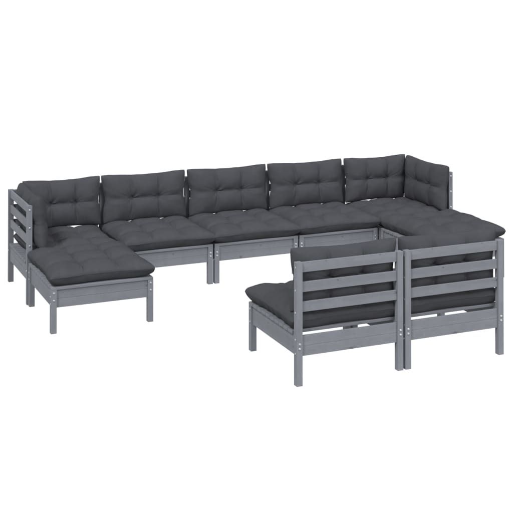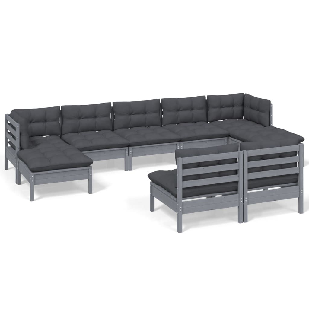 9-cz. zestaw wypoczynkowy do ogrodu, z poduszkami, szary, sosna