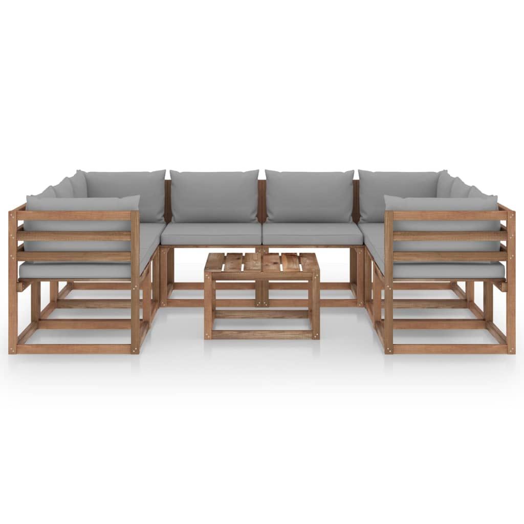 9-cz. zestaw wypoczynkowy do ogrodu, z szarymi poduszkami