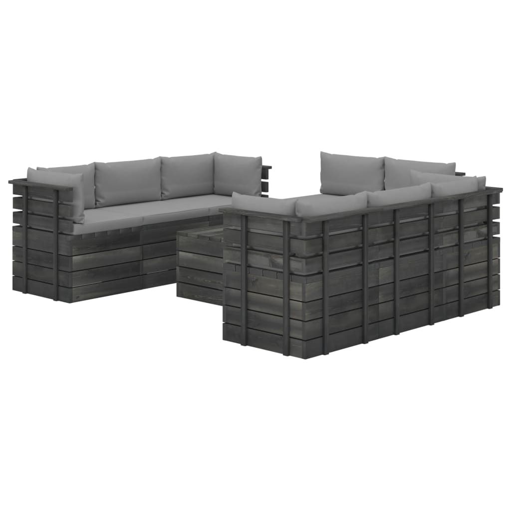 9-cz. zestaw wypoczynkowy z palet, z poduszkami, lita sosna