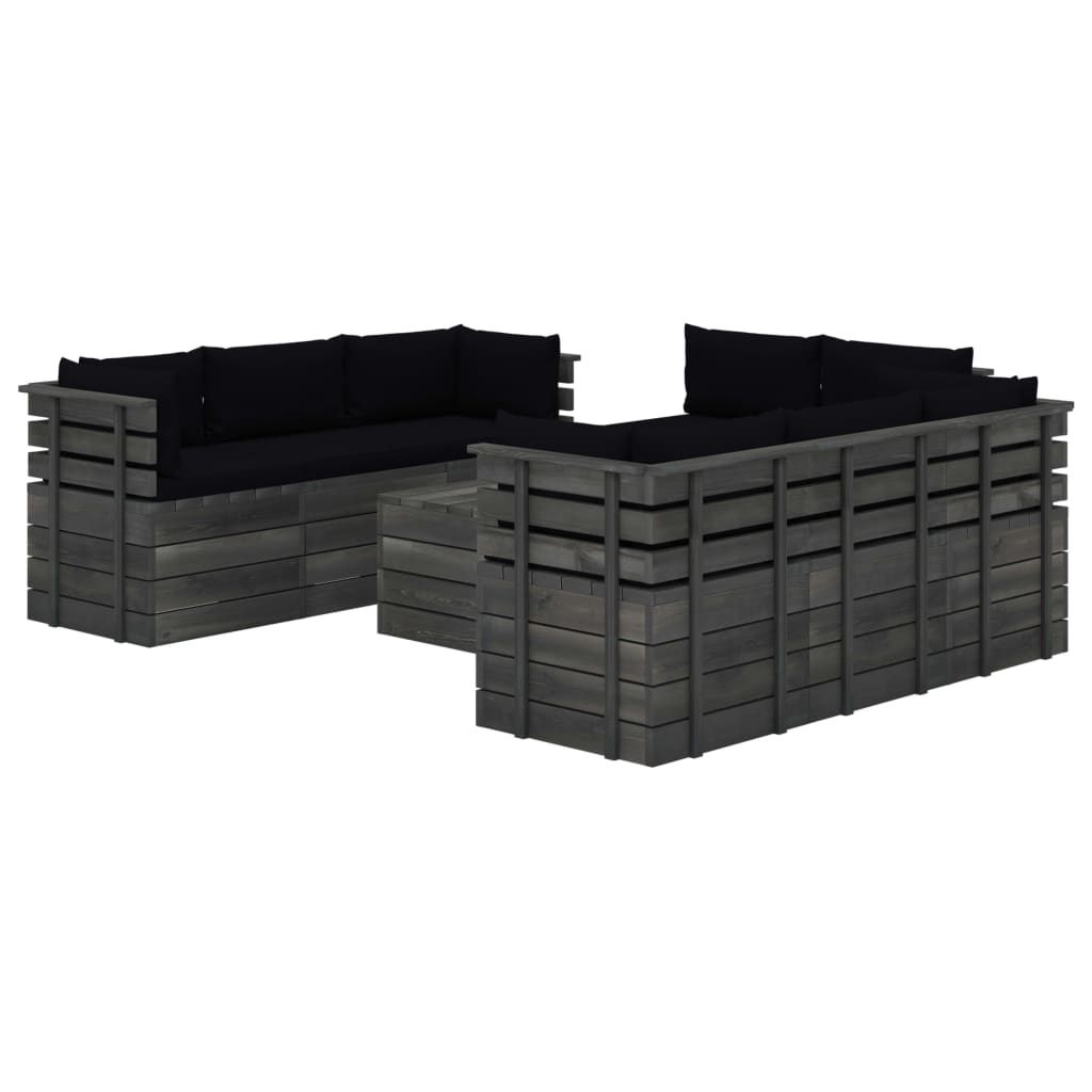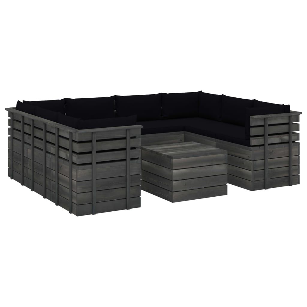 9-cz. zestaw wypoczynkowy z palet, z poduszkami, lita sosna