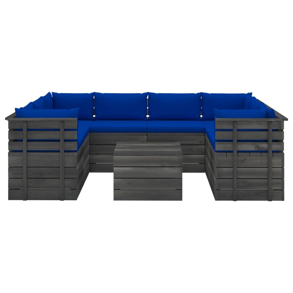 9-cz. zestaw wypoczynkowy z palet, z poduszkami, lita sosna
