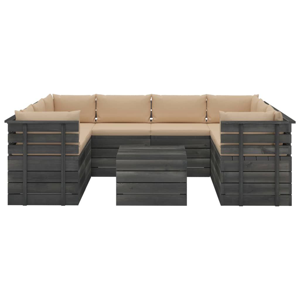 9-cz. zestaw wypoczynkowy z palet, z poduszkami, lita sosna