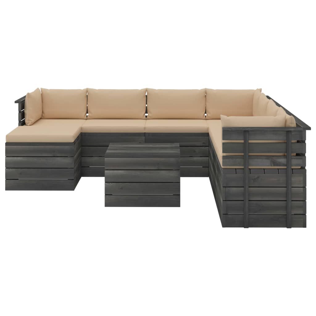 9-cz. zestaw wypoczynkowy z palet, z poduszkami, lita sosna
