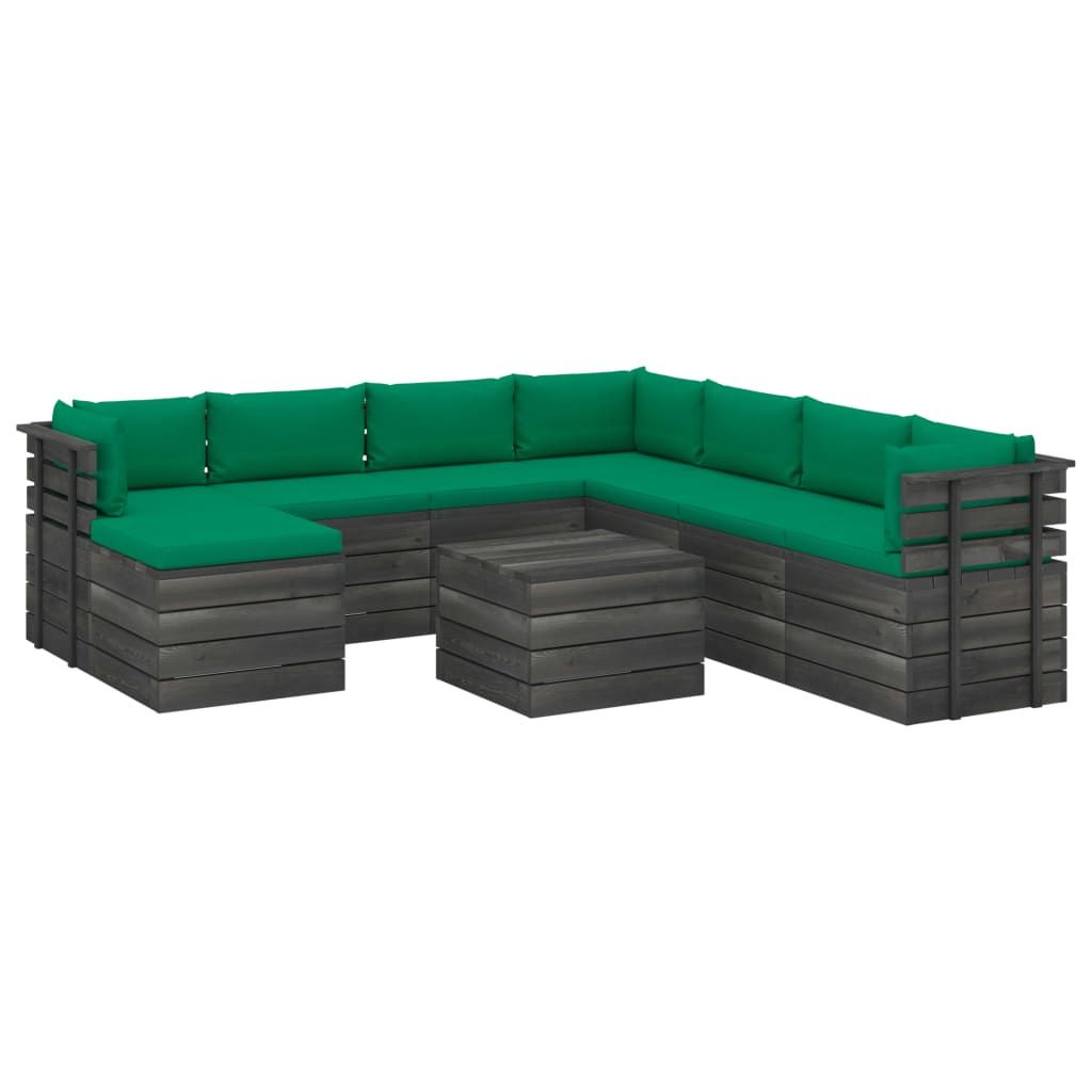 9-cz. zestaw wypoczynkowy z palet, z poduszkami, lita sosna