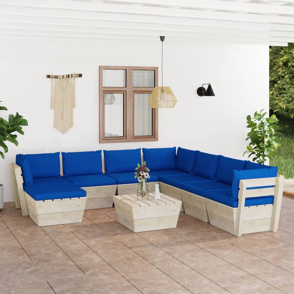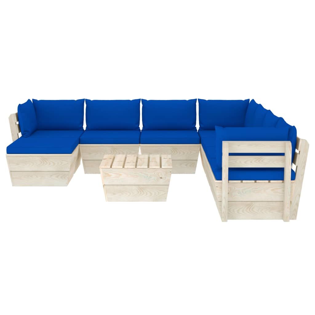 9-cz. zestaw wypoczynkowy z palet, z poduszkami, świerk