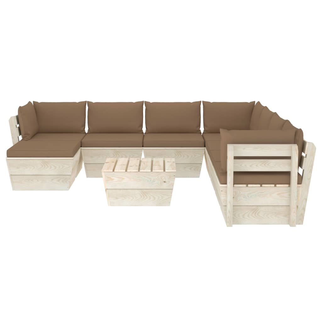 9-cz. zestaw wypoczynkowy z palet, z poduszkami, świerk