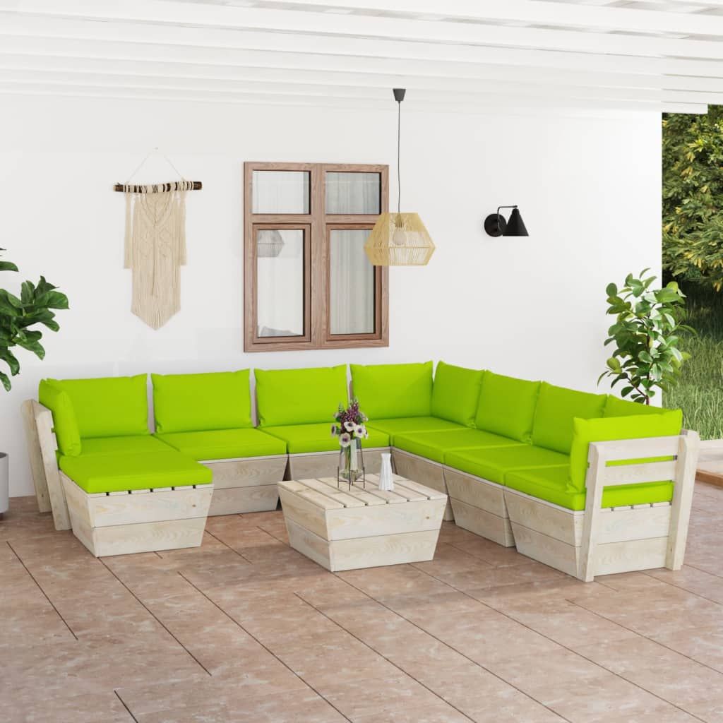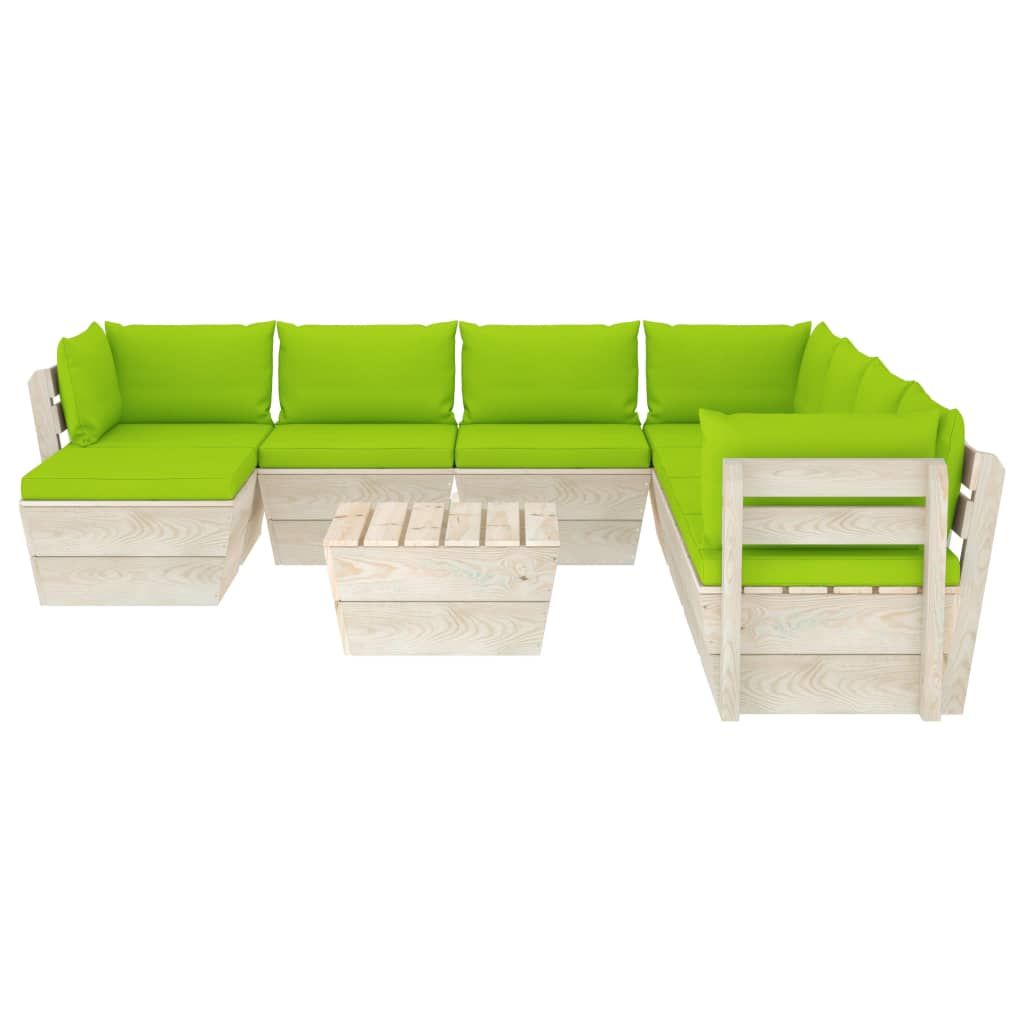 9-cz. zestaw wypoczynkowy z palet, z poduszkami, świerk