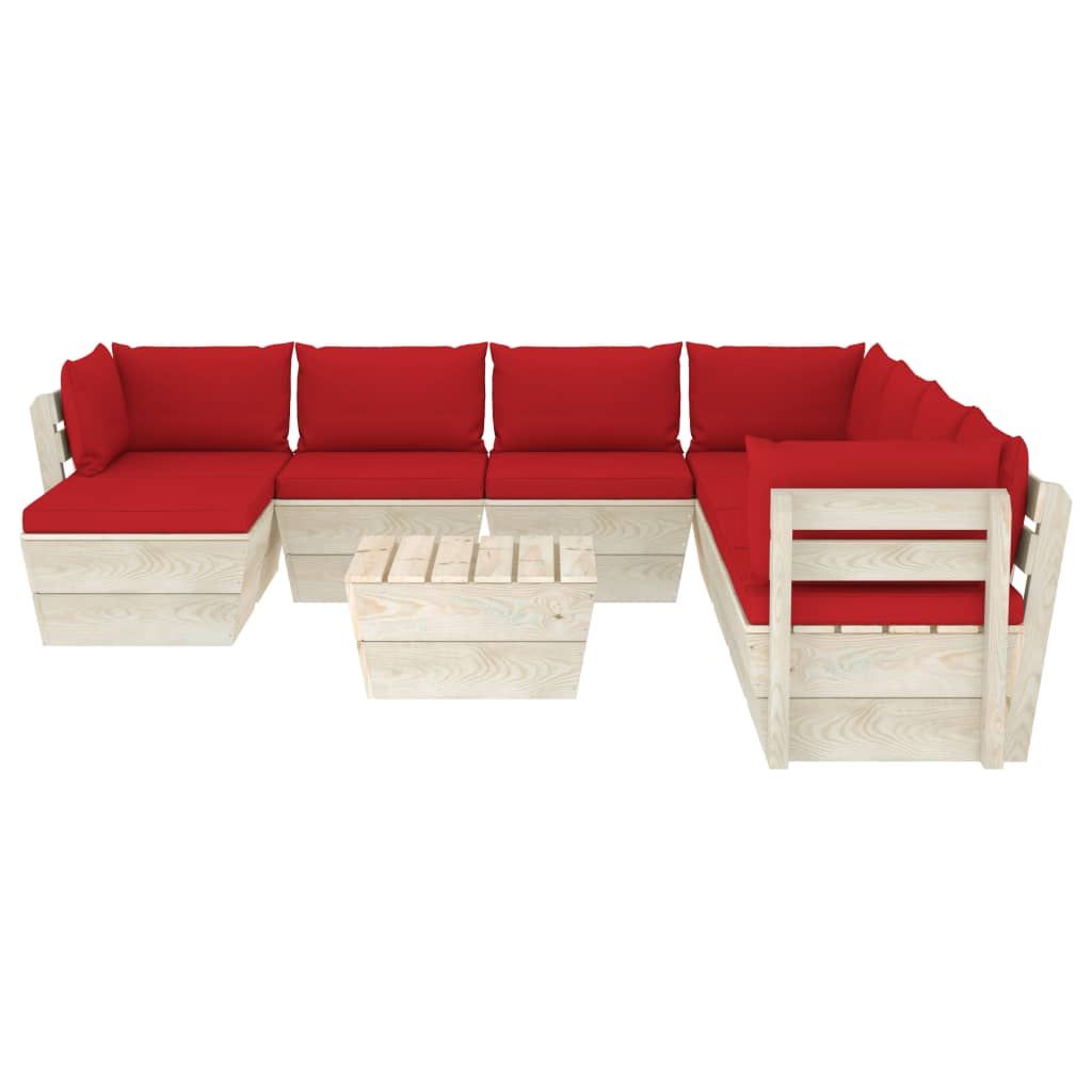 9-cz. zestaw wypoczynkowy z palet, z poduszkami, świerk