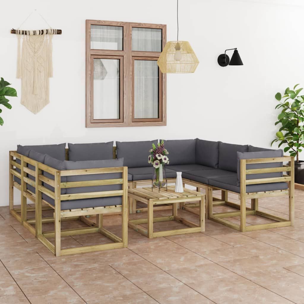 9-cz. zestaw wypoczynkowy z poduszkami, impregnowana sosna