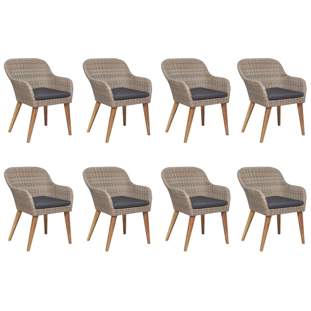 Stwórz fascynującą i spójną estetykę w swojej przestrzeni na świeżym powietrzu dzięki naszemu zestawowi jadalnianemu do ogrodu! Stół jadalniany wykonano z litego drewna akacjowego wykończonego olejem, dzięki czemu jest stabilny, trwały i łatwy w utrzymaniu. Zawierające malowane proszkowo, stalowe ramy pokryte odpornym na czynniki pogodowe rattanem PE krzesła są mocne i można je bez trudu wyczyścić. Ergonomiczny kształt i grubo wyściełane poduszki oferują najwyższy komfort siedzenia. Łatwe w utrzymaniu, poliestrowe poszewki poduszek można łatwo zdjąć i wyprać. Uwaga: zalecamy przykrycie mebli na czas opadów deszczu, śniegu lub mrozu, aby mogły posłużyć dłużej.