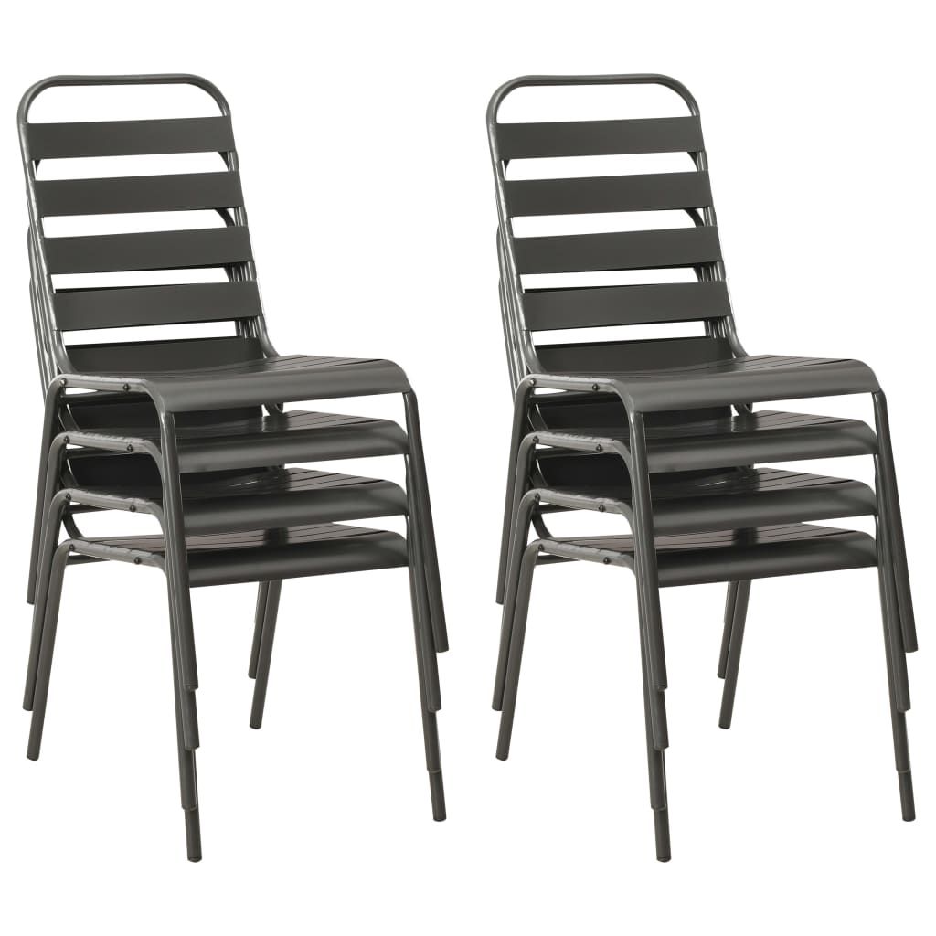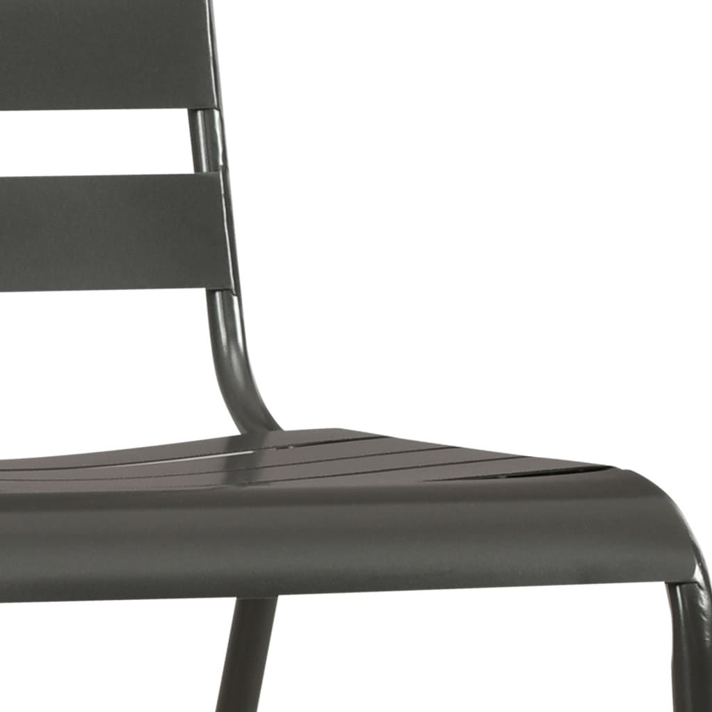 Komplet mebli ogrodowych ma listwowy wzór, który wniesie nieco industrialnego charakteru na Twój taras, do ogrodu lub jadalni. Wysokiej jakości stół i krzesła zostały wykonane z wytrzymałej stali pokrytej powłoką elektroforetyczną i proszkową. Powłoka elektroforetyczna sprawia, że meble są odporne na rdzę, warunki atmosferyczne oraz długotrwałe użytkowanie na zewnątrz, podczas gdy powłoka proszkowa zwiększa ich trwałość. Krzesła można ustawić w stos, kiedy nie są używane, co pozwala zaoszczędzić miejsce. Meble są łatwe w czyszczeniu i konserwacji. Zestaw obejmuje 1 stół i 8 krzeseł sztaplowanych. Montaż zestawu jest prosty.