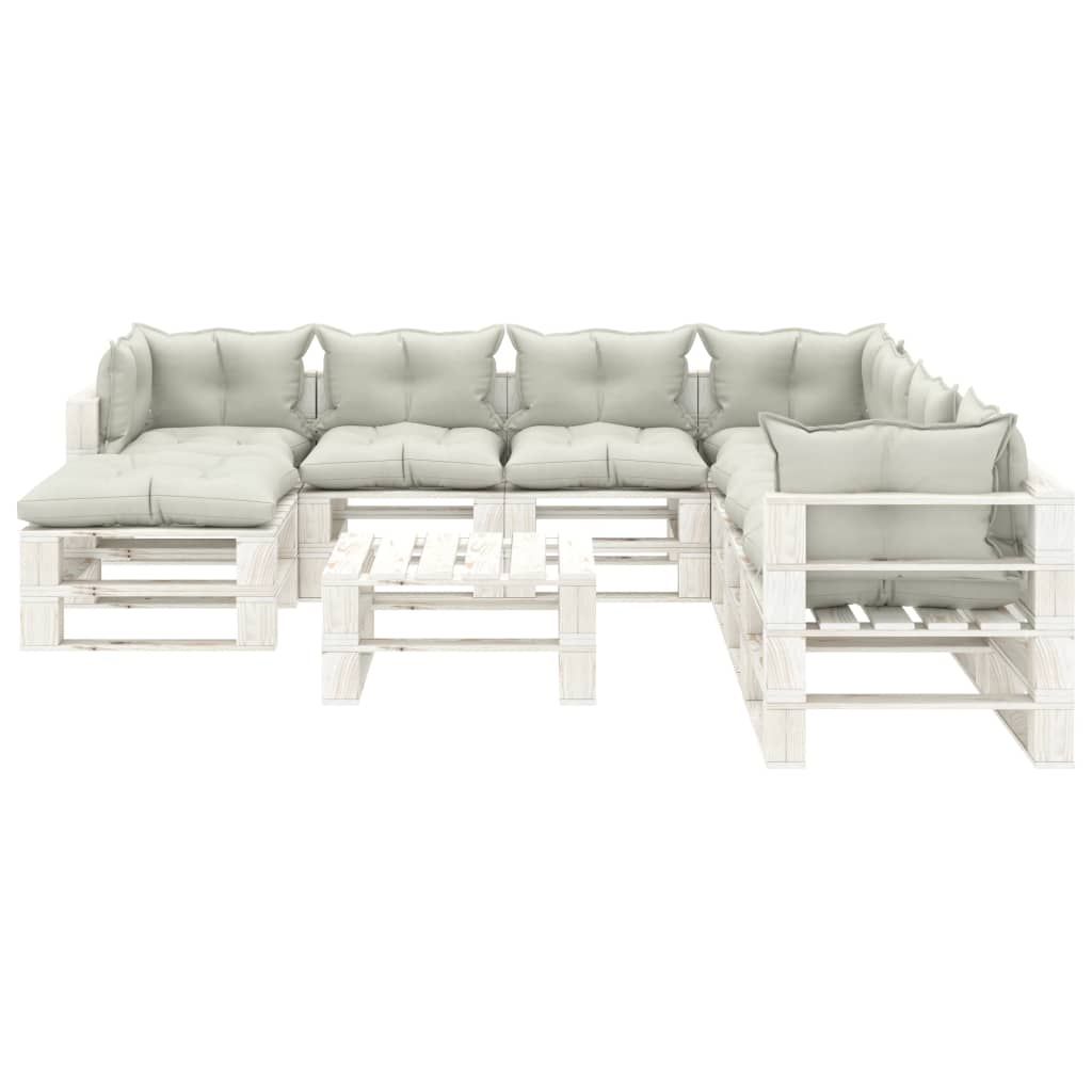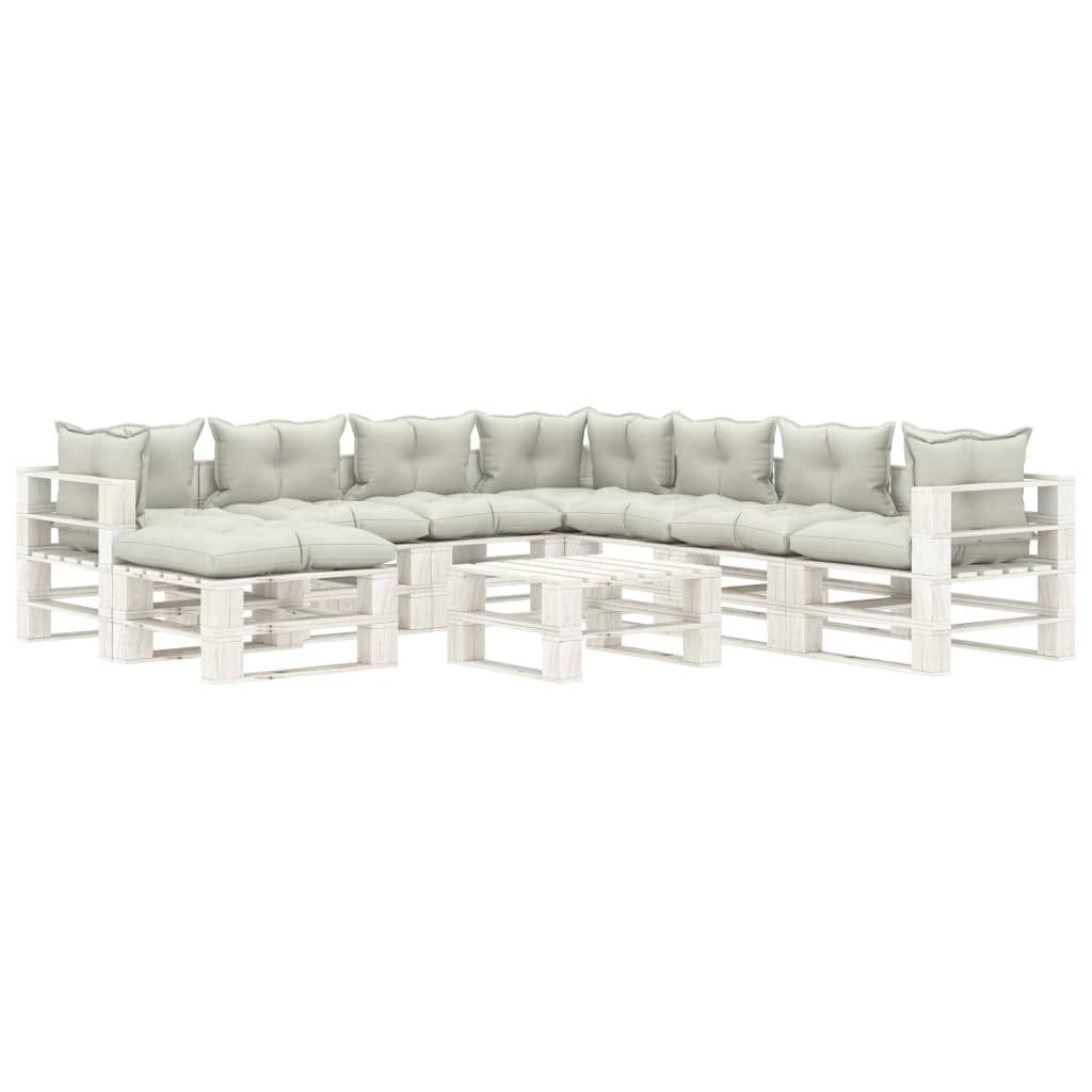 9-częściowy zestaw mebli ogrodowych z palet, beżowe poduszki