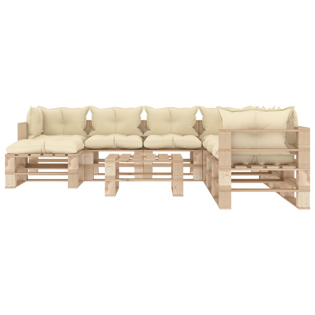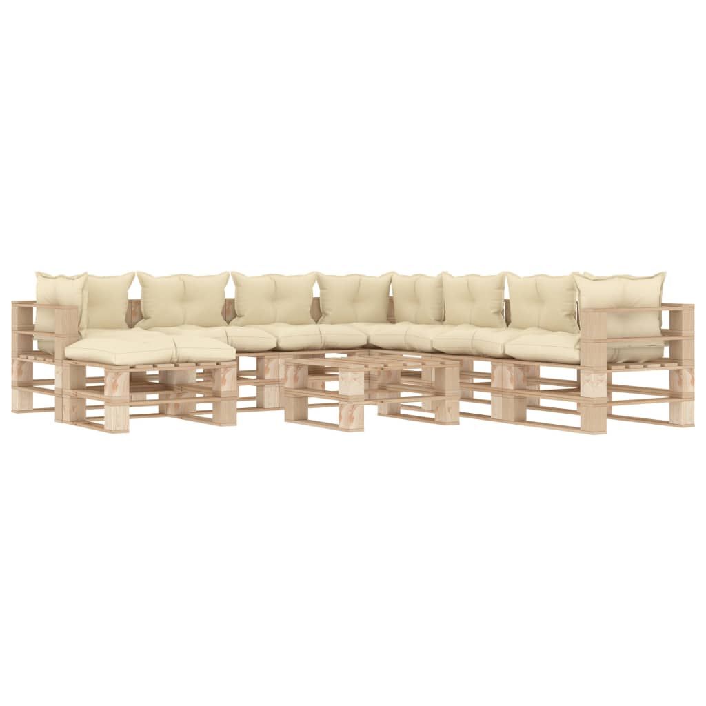 9-częściowy zestaw mebli ogrodowych z palet, kremowe poduszki