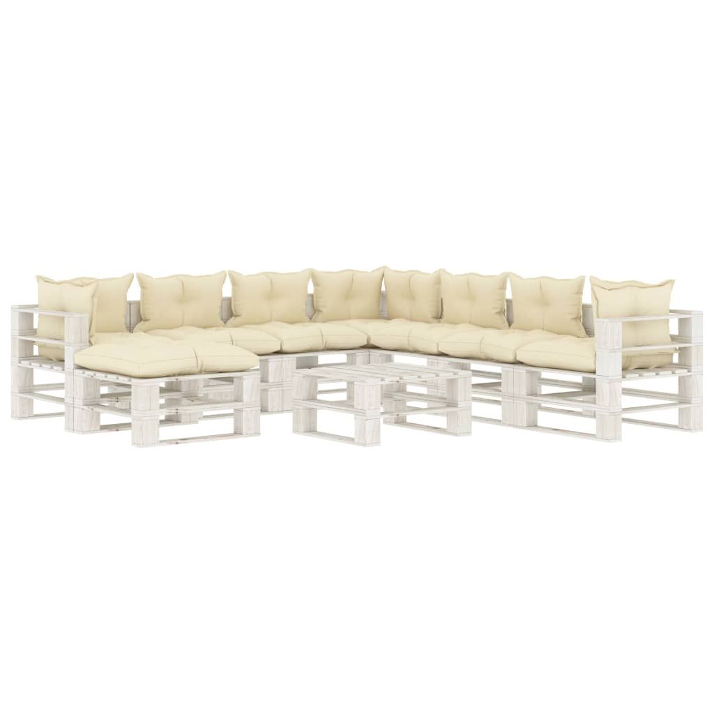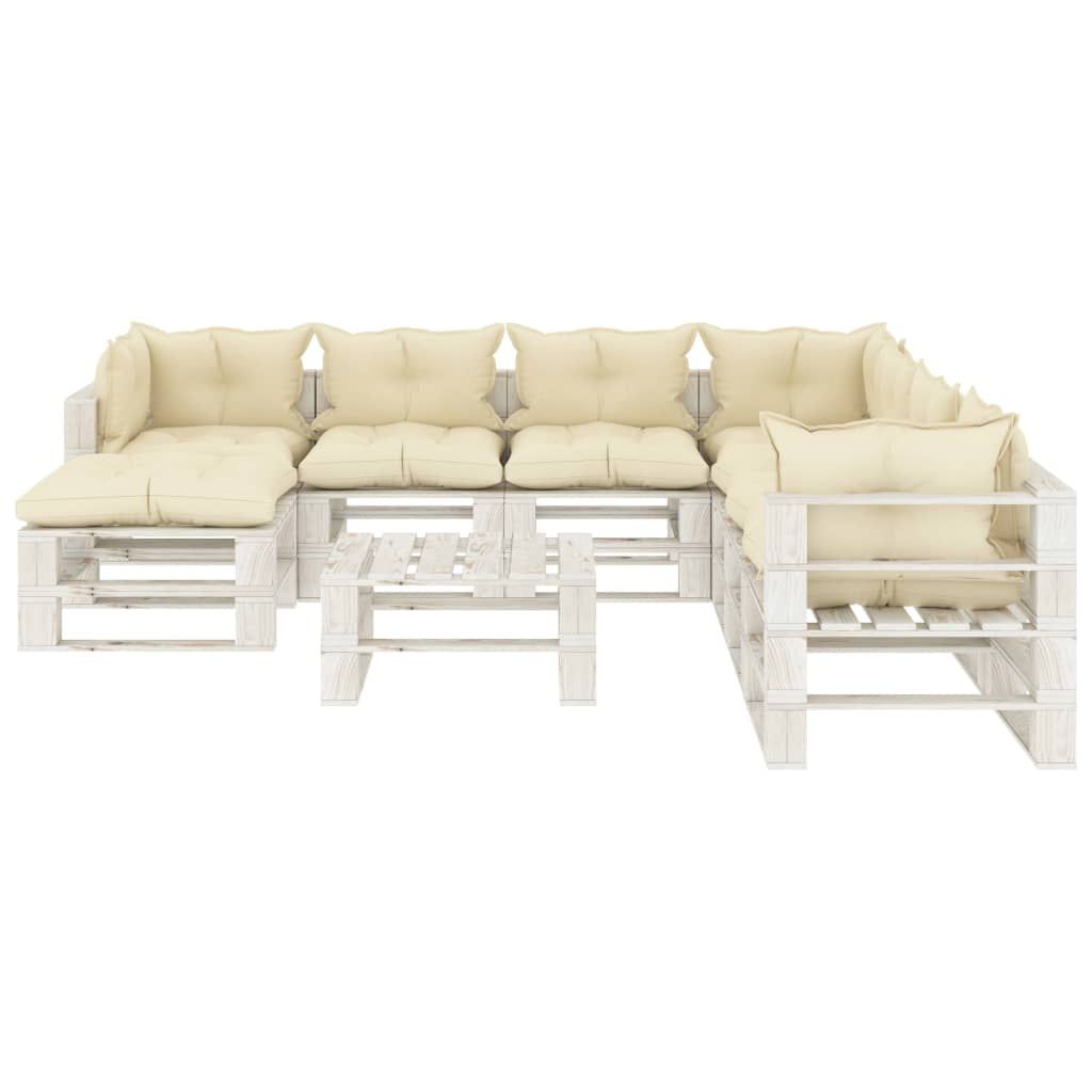 9-częściowy zestaw mebli ogrodowych z palet, kremowe poduszki