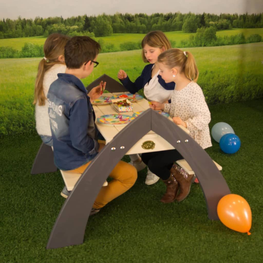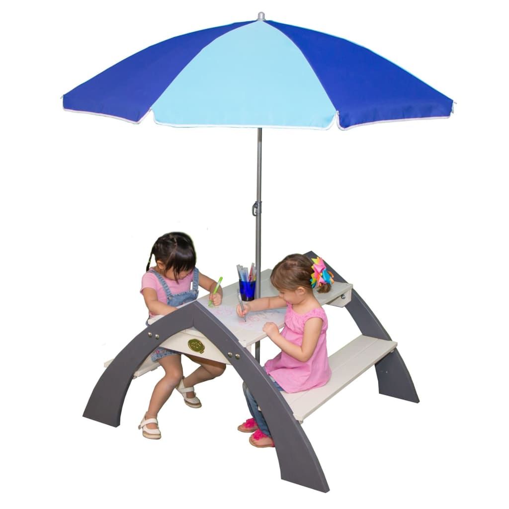 AXI Stolik piknikowy Kylo dla dzieci, z parasolem, XL, biało-szary