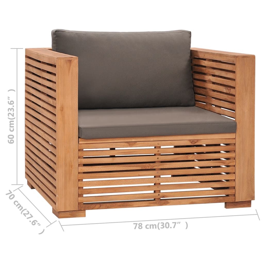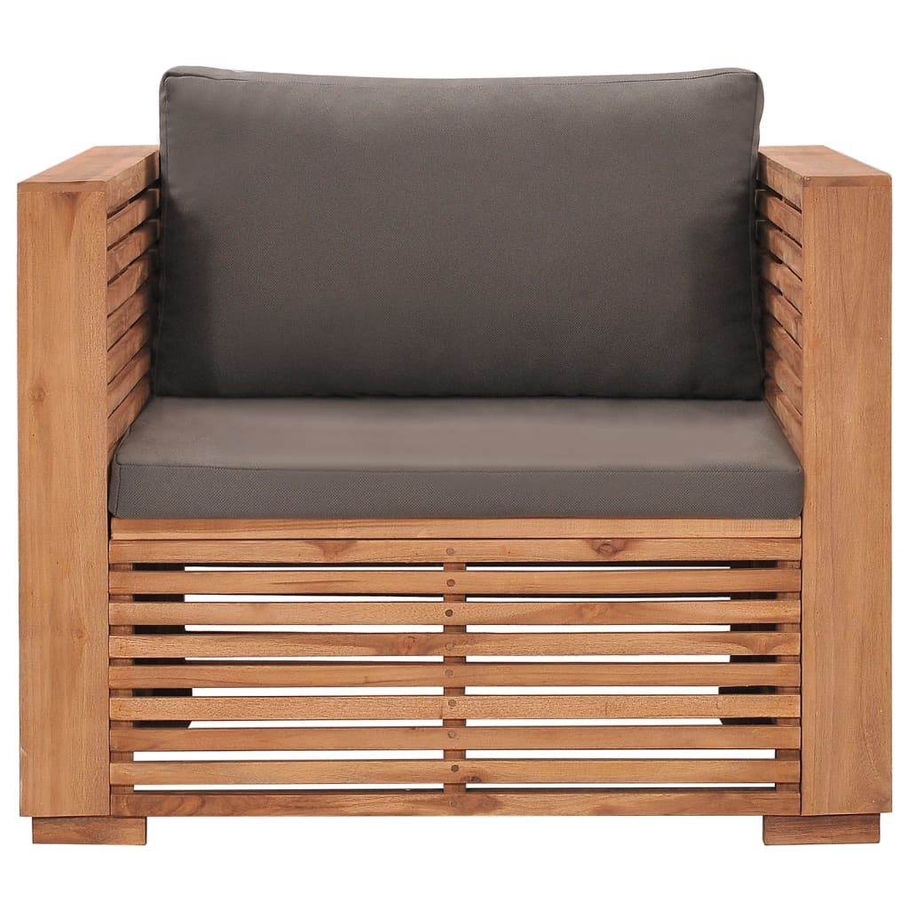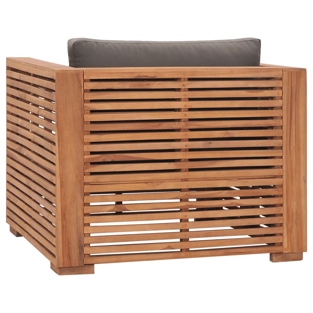 Fotel ogrodowy z ciemnoszarymi poduszkami, lite drewno tekowe