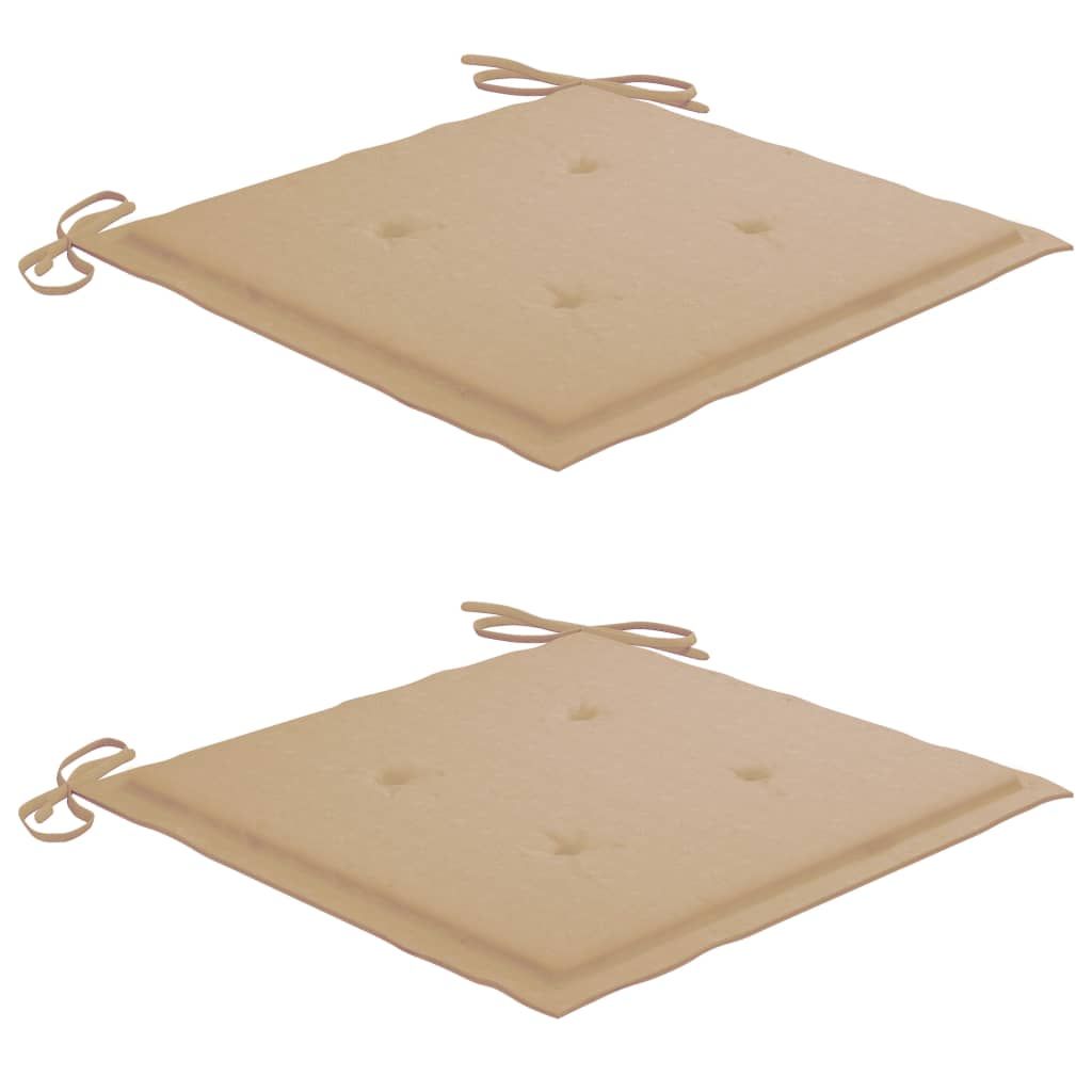 Krzesła ogrodowe, 2 szt., beżowe poduszki, drewno tekowe