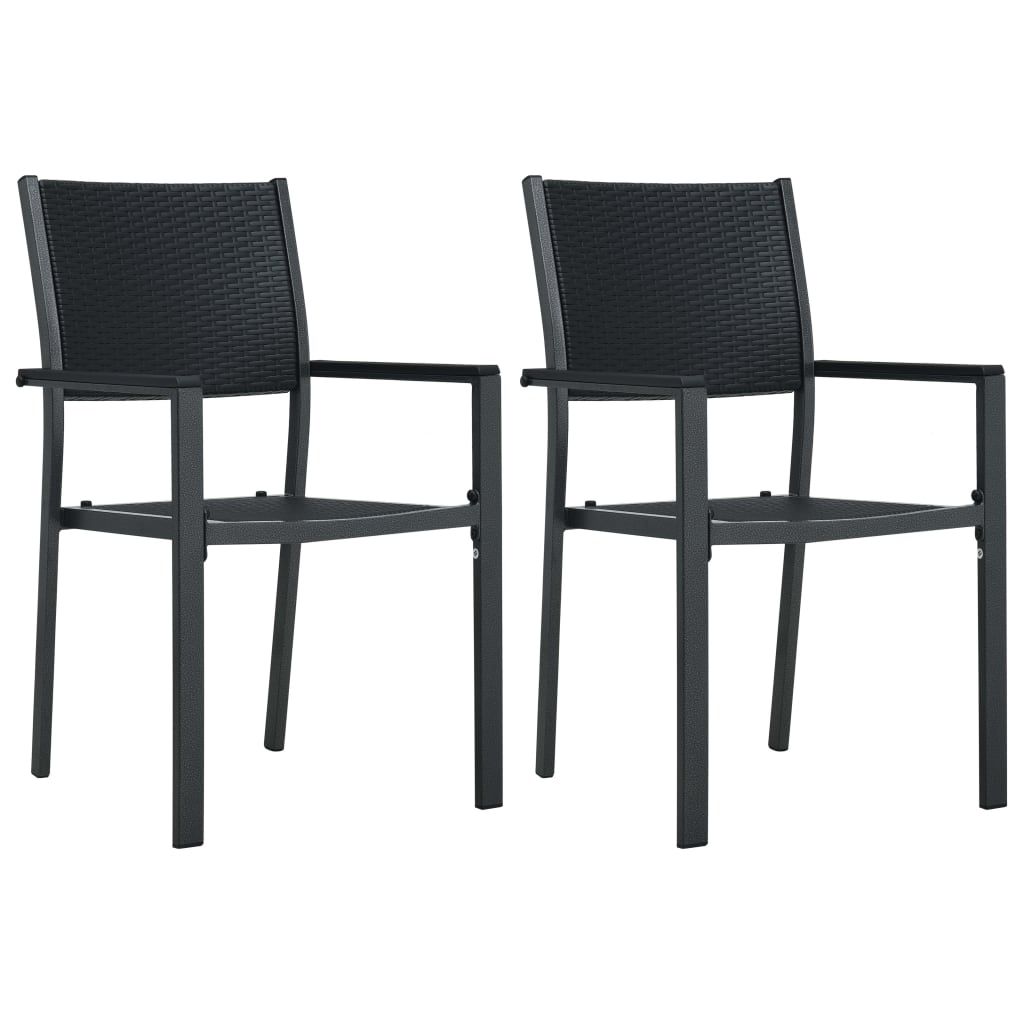 Krzesła ogrodowe, 2 szt., czarne, plastik stylizowany na rattan