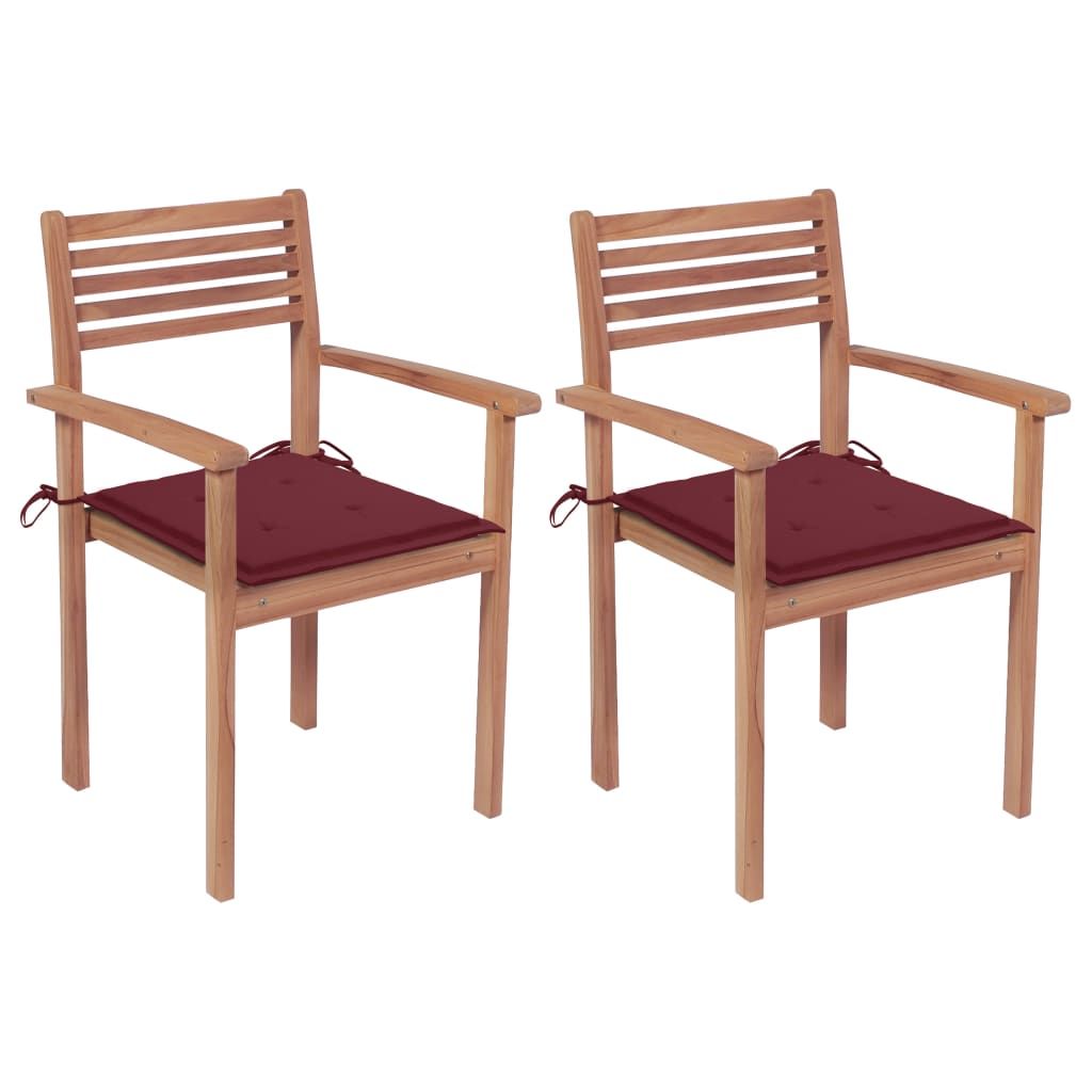 Krzesła ogrodowe, 2 szt., czerwone poduszki, lite drewno tekowe