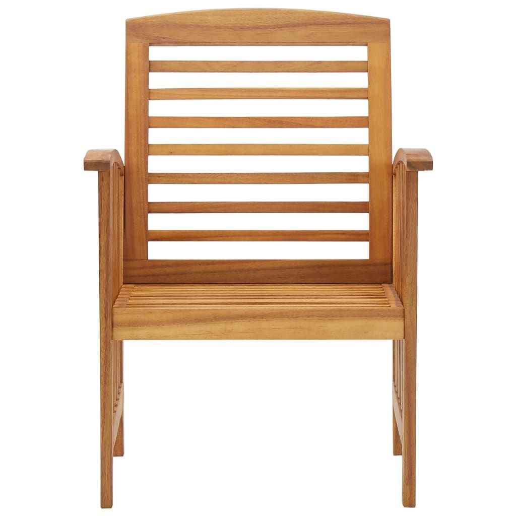 Ten zestaw 2 drewnianych krzeseł ogrodowych jest specjalnie zaprojektowany aby przyciągnąć wzrok w Twoim ogrodzie, na patio i tarasie! Krzesło ogrodowe wykonane jest z litego drewna akacjowego z wykończeniem olejem, dzięki czemu jest stabilne i trwałe. Kunszt wykonania i piękne drewniane słoje sprawiają, że każdy mebel jest niepowtarzalny i nieco różni się od pozostałych. Ważna uwaga: kolory i usłojenie poszczególnych egzemplarzy mogą się różnić, co sprawia, że każdy z nich jest unikatowy; wysyłka odbywa się losowo.