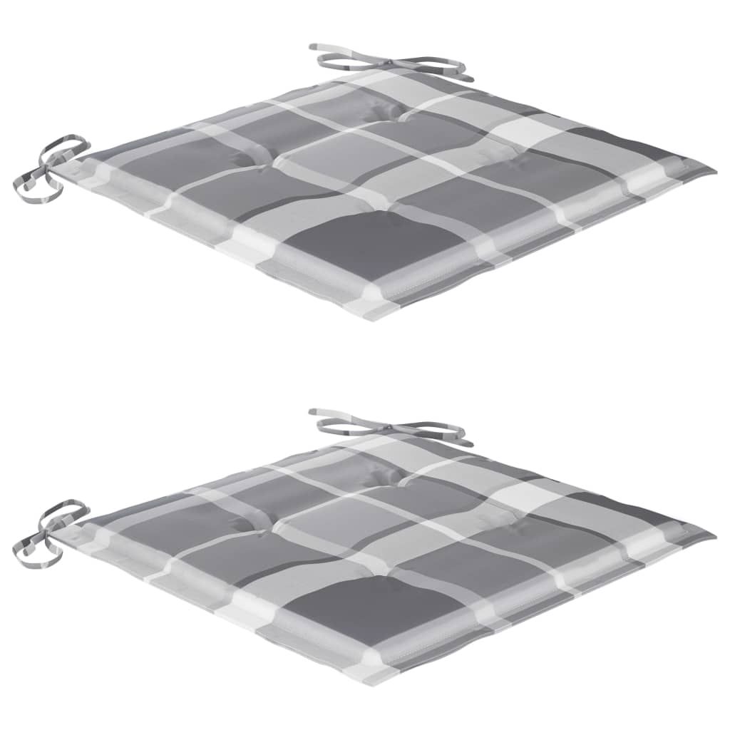 Krzesła ogrodowe, 2 szt., poduszki w szarą kratę, drewno tekowe